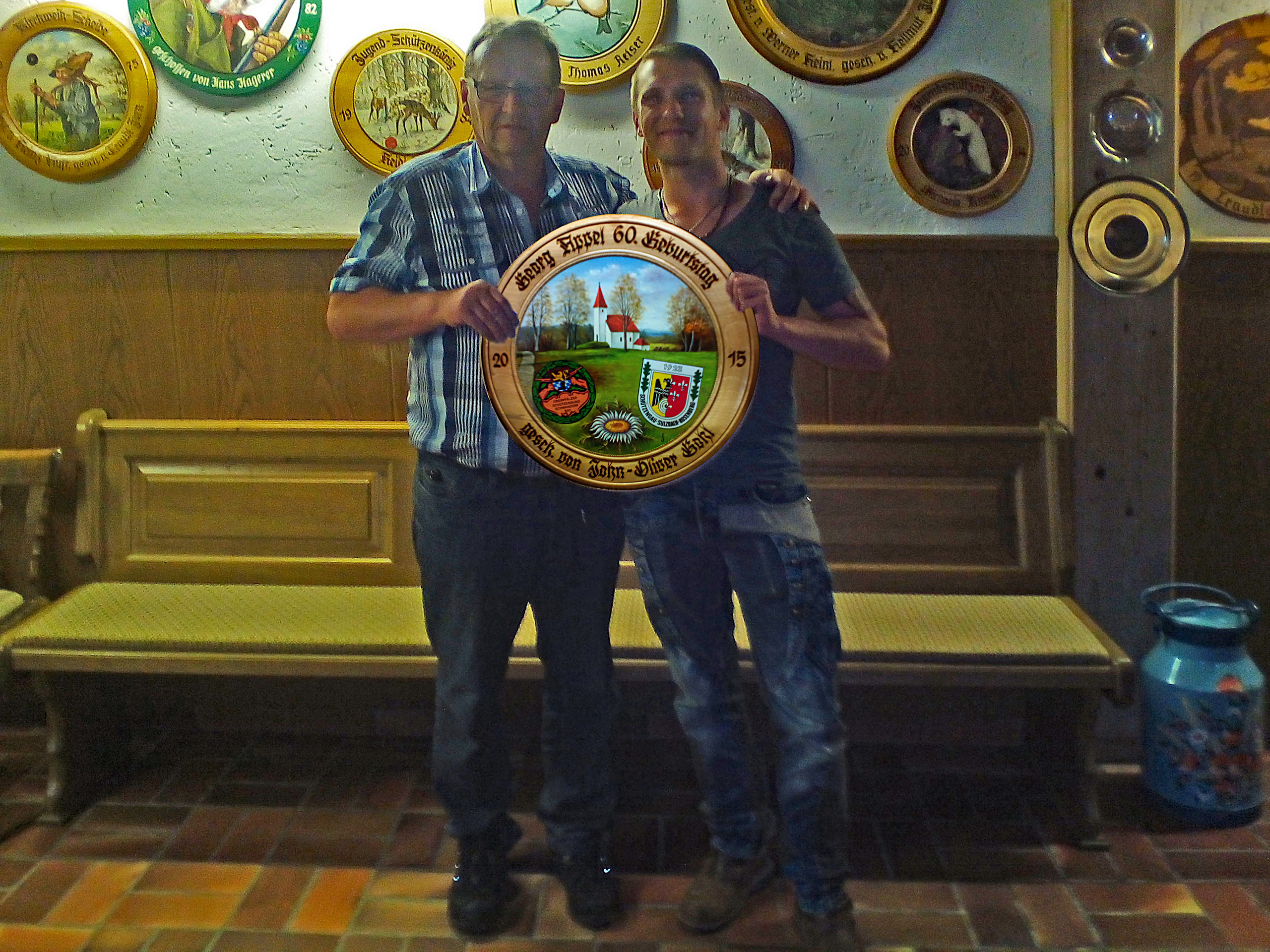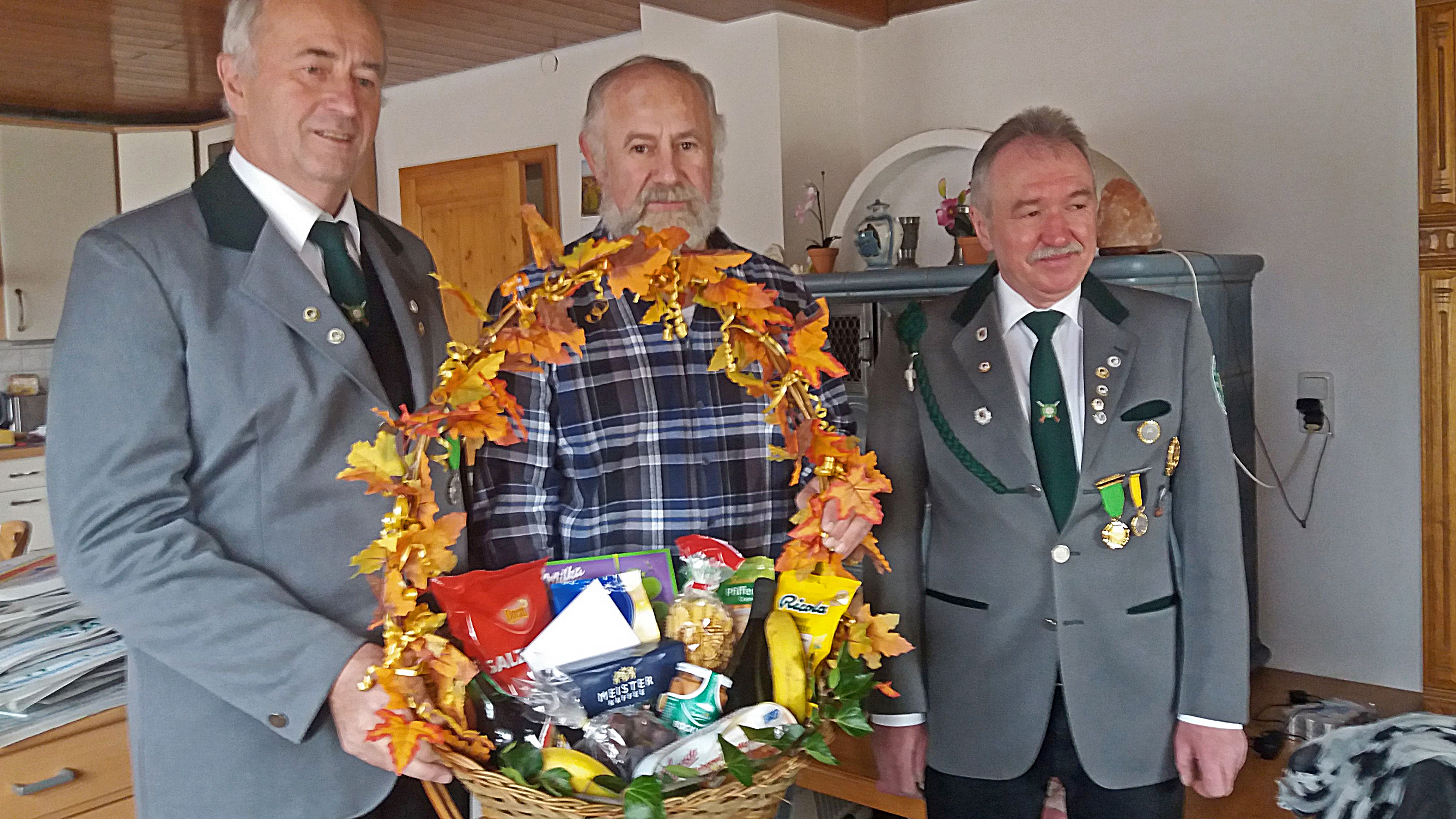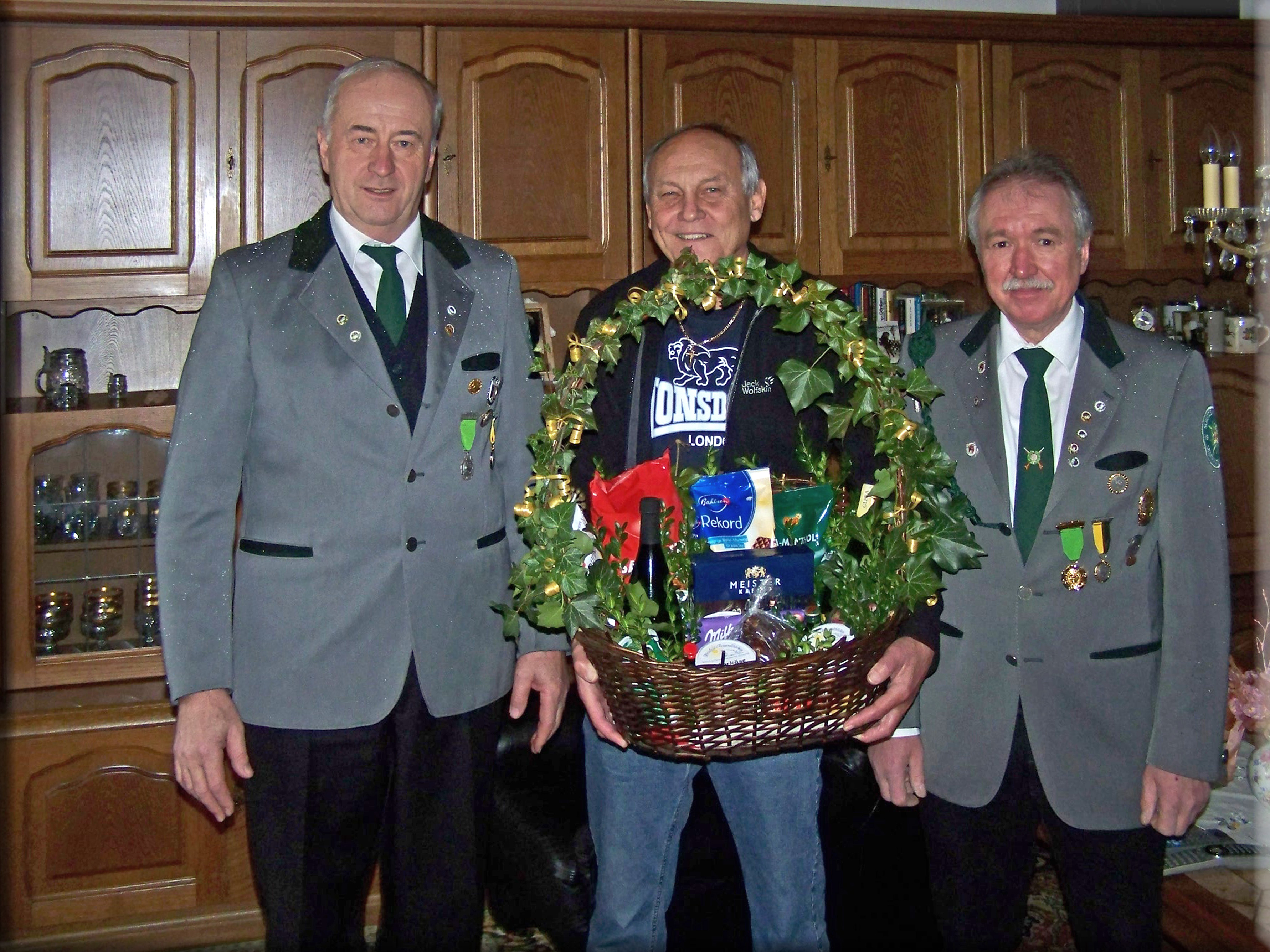 60. Geburtstag Reiser Johann 1. Schützenmeister Rudi Schwab und Gerd Haller ließen es sich nicht nehmen Schützenbruder (Johann) Hans Reiser aus Anlass seines 60. Geburtstages vormittags zu besuchen. Sie überbrachten ihm die besten Glückwünsche des Vereins und überreichten einen Geschenkkorb. Mit einer kleinen Sitzweil unterbrachen sie die tägliche Arbeit von Hans.