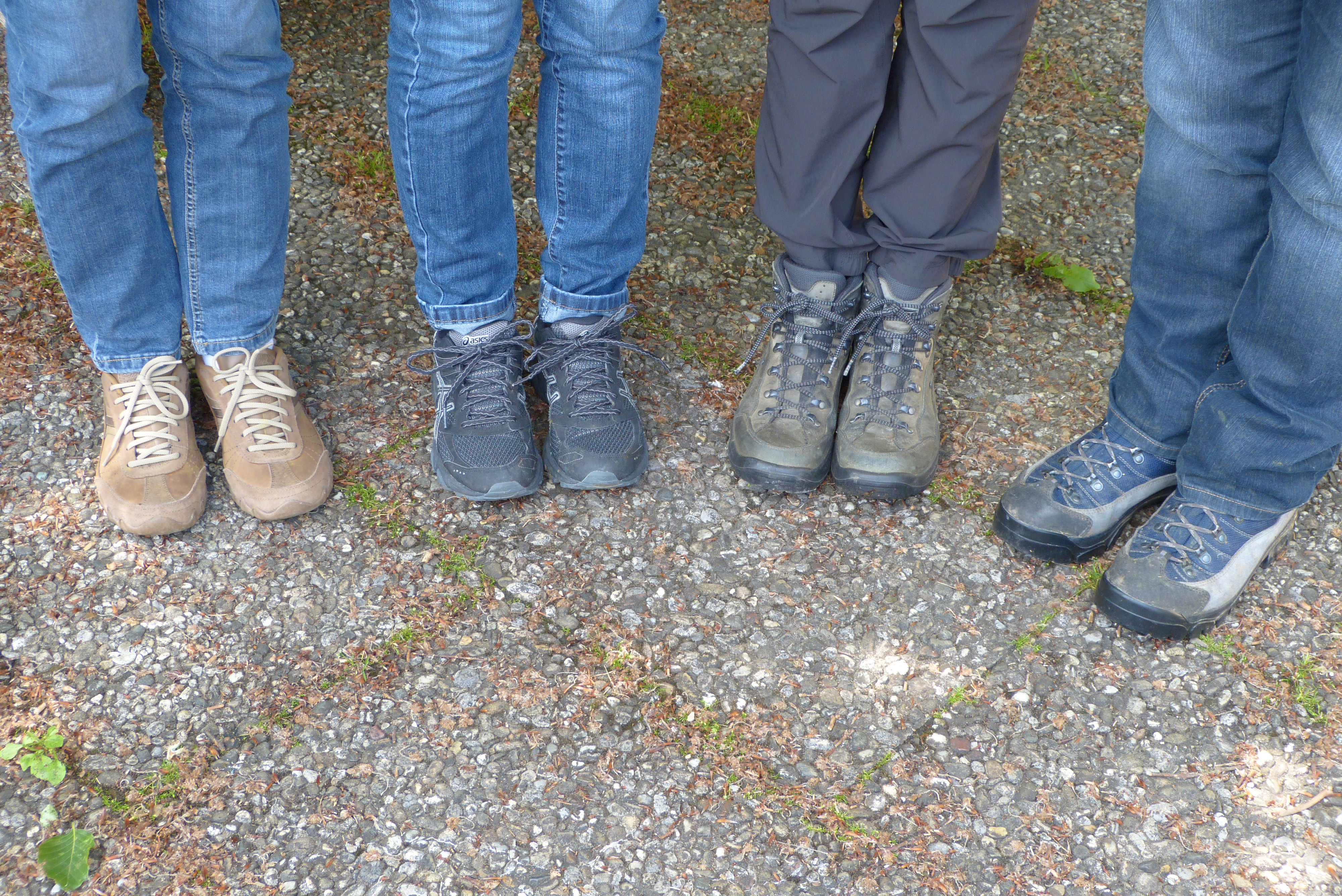 Der Ausgangspunkt der Tour, Erkelsdorf, wurde mithilfe von zwei vollgeladenen Autos erreicht. Von dort aus ging es auf dem Albrandweg, der immer ziemlich auf dem Kamm der Berge verläuft, durch den mit frischem Grün belaubten Wald zügig bis zum Knappenberg. Auf dem Weg dorthin kam von Brigitte Appel der wunderbare Satz:“ Wer sagt denn, dass es auf dieser Wanderung keine Frauenschuhe zu sehen gibt? Seht doch, es sind genügent Frauen mit Schuhen dabei.“ Damit war alles klar, dass auch die Wanderung am Fronleichnamstag 2016 ebenfalls wieder eine Frauenschuhwanderung geworden war.