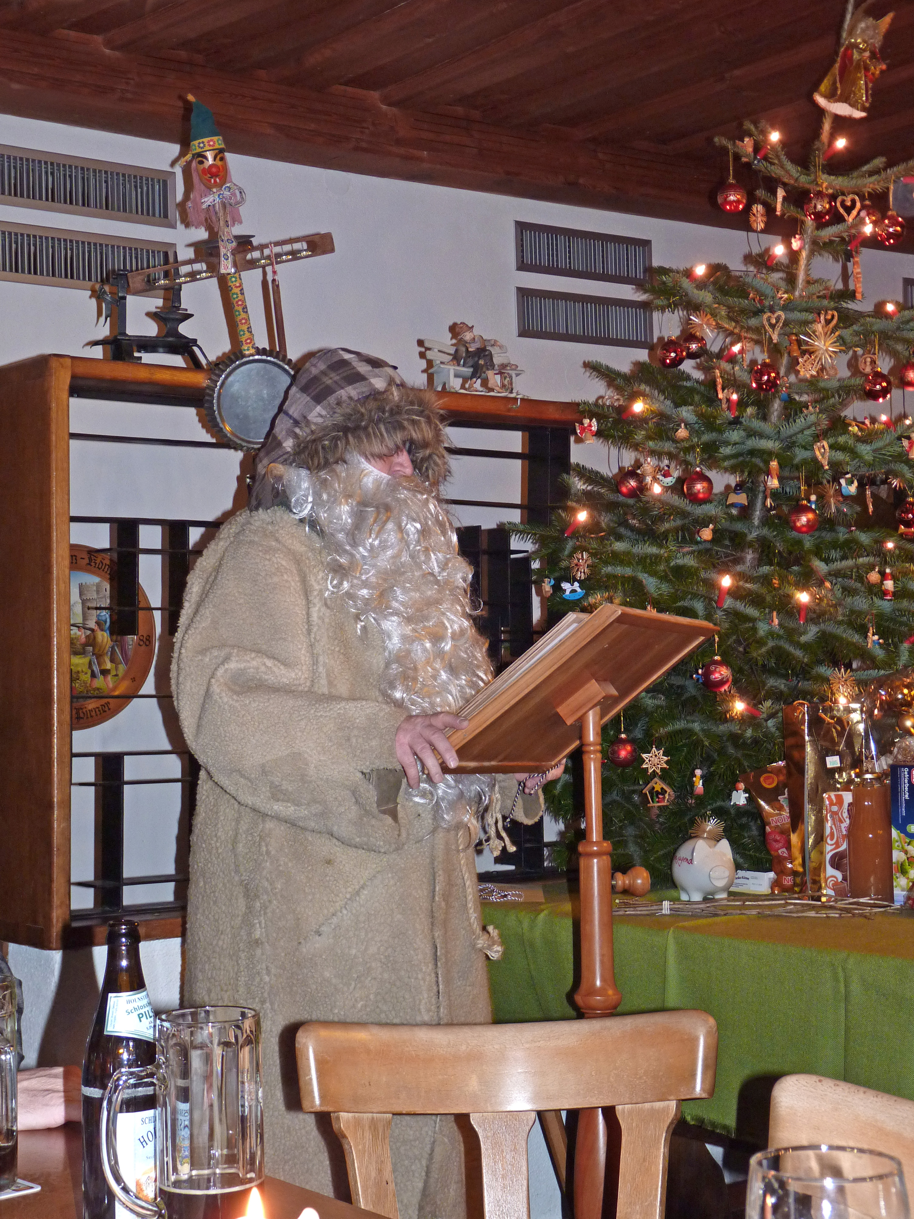 Weihnachtsfeier und Ehrung der Jahresmeister Samstag 17. Dezember 2016 Gut gefüllt war die Wirtsstube bei der Weihnachtsfeier der Silberdistel Schützen in Neutras zum Jahresabschluss. Die Ehrung der Jahresmeister und Gewinner des Weihnachtspreisschießens stand dabei ebenso auf dem Programm wie ein besinnlicher Teil mit Musik, die von Musikern aus den eigenen Reihen gestaltet wurde, so wie der Besuch des Nikolaus, der nicht nur Geschenke für die Kinder dabei hatte, sondern auch sogenannte Leviten für die ältere Schützenschar. Schützenmeister und zugleich Vereinswirt Rudi Schwab, begrüßte die Schützenschar und übernahm die Preisverteilung des Weihnachtspreisschießens für die Schützenklasse. Den ersten Platz und damit den Schinken sicherte sich Bernd Appel mit einem 65-Teiler. Auf den Plätzen folgten Pauline Regler mit einem 71-Teiler und Sandra Siggelkow mit einem 89-Teiler. Mit der Teilnehmerzahl war der Schützenmeister nicht sehr zufrieden. Aber zum Jahresende hin lässt der Elan halt immer mal ein bißchen nach. Bernd Appel konnte in der Jugendklasse Nico Vogenauer mit einem 71-Teiler als ersten auszeichnen, ihm folgten Hannah Appel und Siggelkow Selina. Die Jahresmeister, die für ihren Trainingsfleiß ausgezeichnet werden, trugen in etwa die gleichen Namen wie im Preisschießen, mit einigen Änderungen in der Reihenfolge. Schießleiter Georg Appel gab die Leistungen der Schützenklasse bekannt. Die Ergebnisse resultieren aus dem Durchschnitt der besten 10 Serien des Jahres. Während es Schützen gibt, die im Laufe des Jahres 21 Serien schießen, schaffen manche nicht mal die erforderliche Mindestanzahl. Dadurch rutscht schon mal ein guter Schütze mit 9 Serien aus der Wertung. Den besten Durchschnitt in der Disziplin Luftgewehr Schützenklasse mit 371 Ringen schaffte Jugendleiter Bernd Appel, gefolgt von Pauline Regler mit 366,7 Ringen. Sie hatten 379 bzw 375 als beste Serien vorzuweisen. John Oliver Gohl lag mit 364,6 Ringen nur knapp dahinter. Seine beste Serie war mit 375 Ringen auch ganz beachtlich. Klaus Tillmann mit 362,8 und Petra Stenzel mit 360,7 lagen dicht auf. In der Disziplin Luftpistolen Schützenklasse ist Michael Loos das Maß aller Dinge. Er bringt es auf 372,6 Ringe Durchschnitt und als bestes Ergebnis 378 Ringe. Den zweiten Platz praktisch fest abonniert hat Hans Roth. Mit 349,2 Ringen im Schnitt legte er wieder eine respektable Leistung vor, obwohl auf den Durchschnitt vom letzten Jahr fast 10 Ringe fehlen. Oberschießleiter Georg Appel konnte sich mit 339,7 Ringen Platz 3 „erschießen“. Jugendleiter Bernd Appel hatte wieder eine Vielzahl von Medaillen zu vergeben. In der Luftgewehr Jugendklasse siegte Nico Vogenauer mit 342,8 Ringen. Jugendkönigin Selina Siggelkow konnte sich mit 326,7 Ringen Platz 2 sichern, dicht gefolgt von Kilian Reif mit 326,3 Hier der Link zu den Ergebnissen der Jahresmeister. Begehrt ist jedes Jahr die reichhaltige Tombola. Bevor diese aber abgeräumt werden konnte, hatte erstmal der Nikolaus das Sagen. Es war aber mehr ein „Rumpeldammer“. Er wusste mal wieder alles, was die Schützen das ganze Jahr über so angestellt hatten. Natürlich hatte er auch etwas für die Schützenkinder dabei. Schützenmeister Rudi Schwab bedankte sich für die zahlreichen Spenden für die Tombola, aber auch beim Res´n-Wirt und Schützenbruder Hans Wagner, der zum Gabentisch beisteuerte. Den Jahresabschluss der Schützen bildet das Geburtstagsschießen am Freitag 30. Dezember. Die Geburtstagskinder des IV. Quartals decken den Gabentisch.