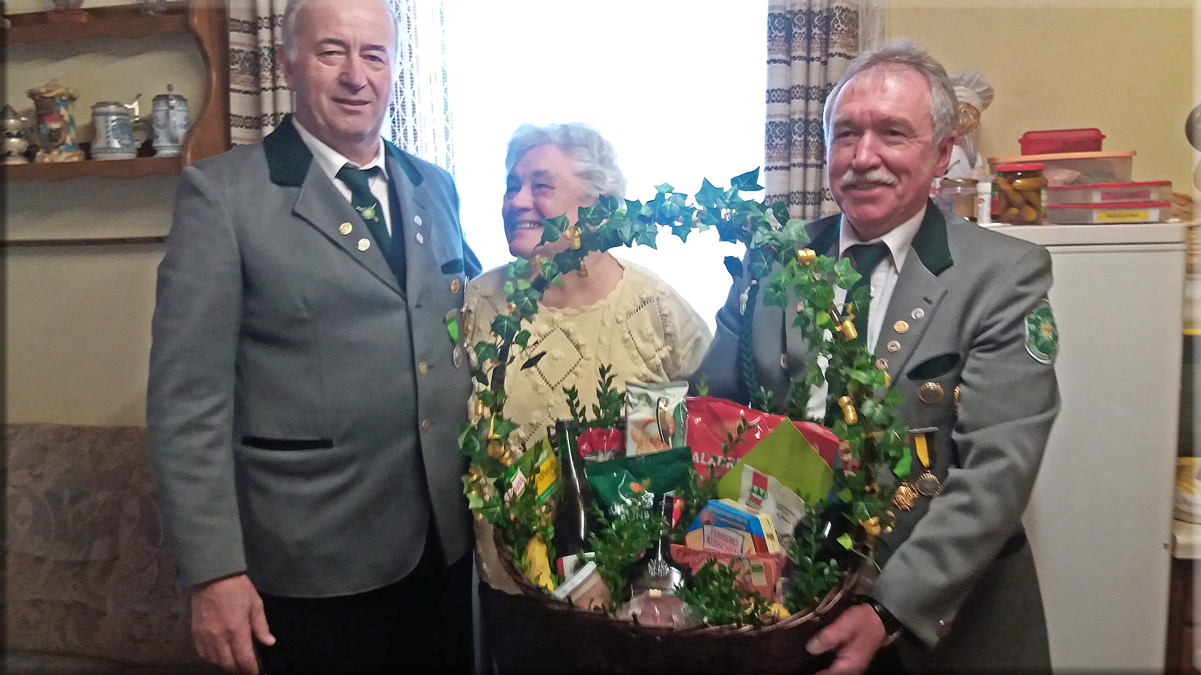 65. Geburtstag von Dorn Traudl Am Dienstag beging unser langjähriges Mitglied, die Wirtin des Gasthauses „Goldene Krone“ in Kirchenreinbach, Dorn Traudl, ihren 65. Geburtstag. Aus diesem Anlass besuchte erster Schützenmeister Schwab Rudi in Begleitung von Schriftführerin Regler Pauline die Geburtstäglerin einen Tag später, um die Glückwünsche des Vereins zu überbringen und ein Präsent zu überreichen. Traudl, wir hoffen und wünschen, dass Du einen wunderbaren Geburtstag feiern konntest und wünschen Dir weiterhin alles erdenklich Gute. Bleibe Deinem Schützenverein auch weiterhin treu.