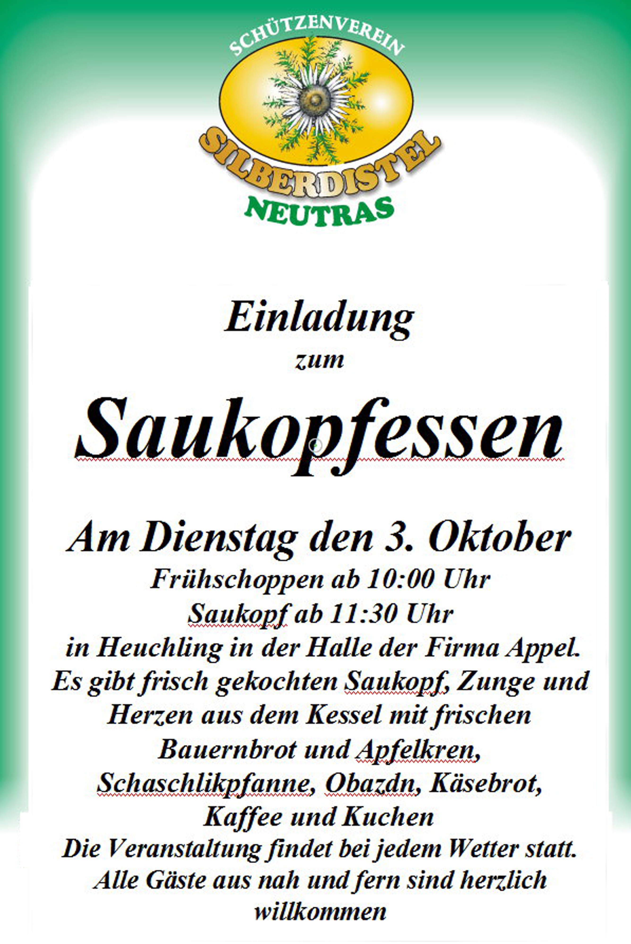 Schießtage: 20./ 21./ 27./ 28. April/ 04. und 05. Mai ab jeweils 18.00 h