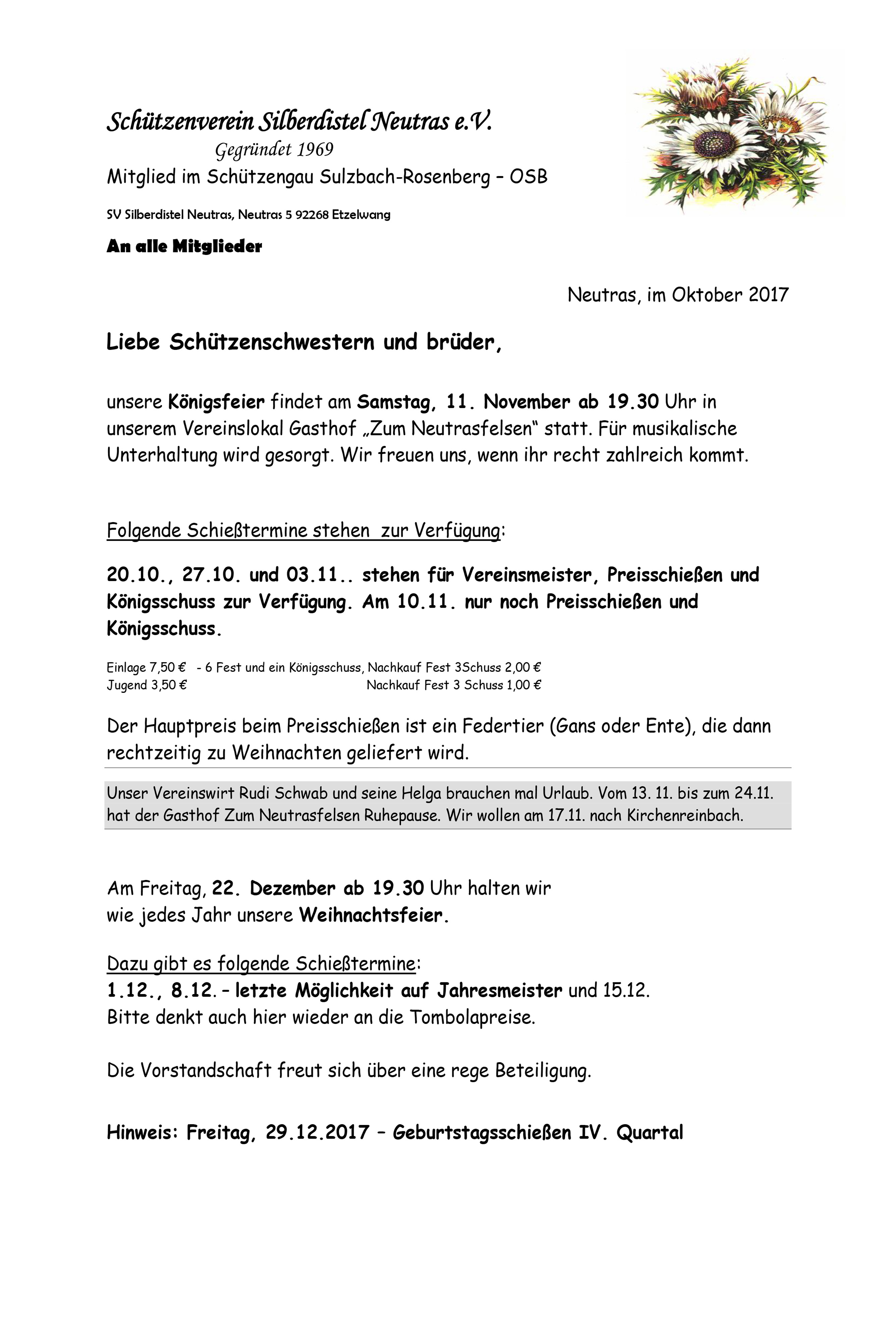 Verzeichnis des Archivs vom Schützenjahr 2017