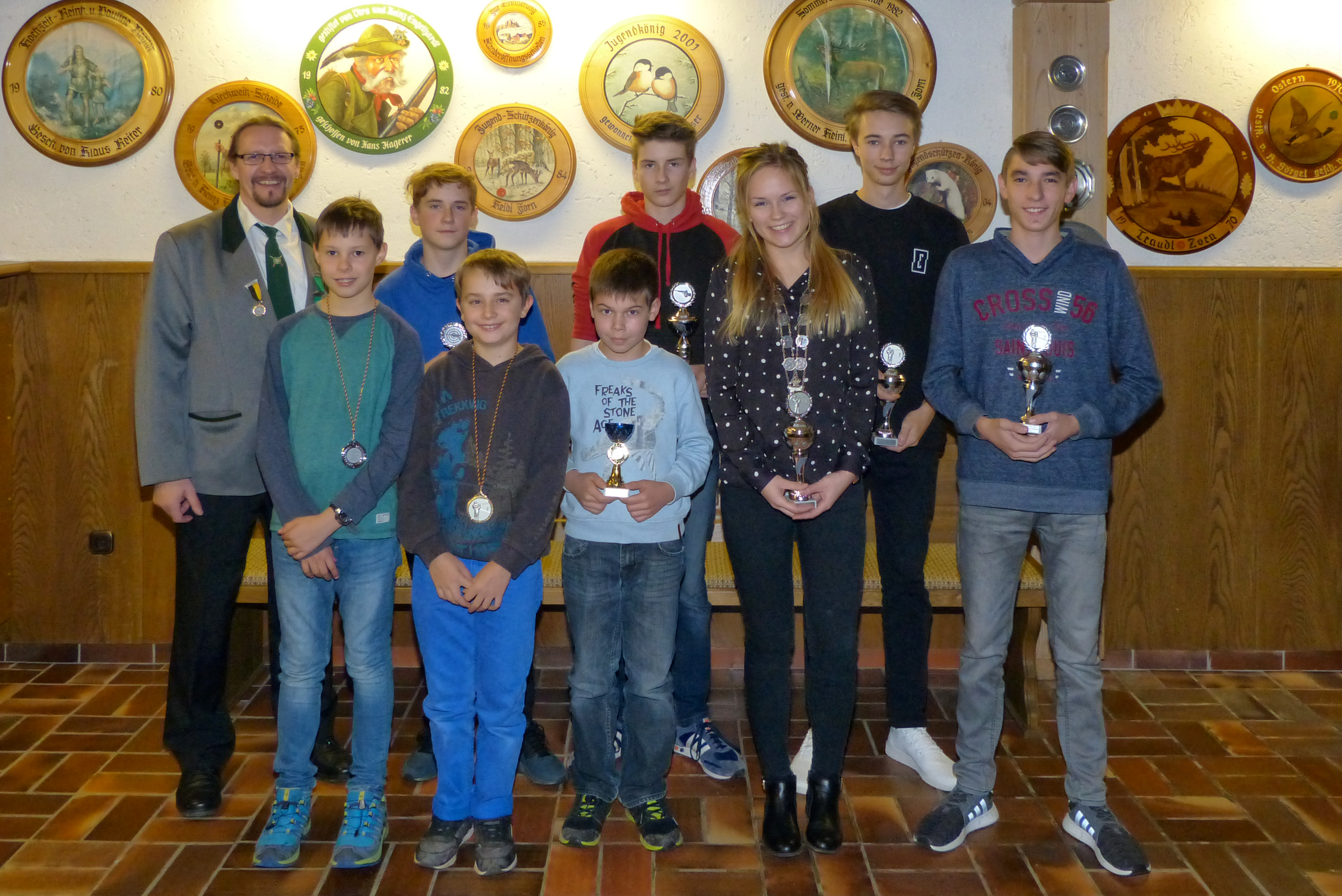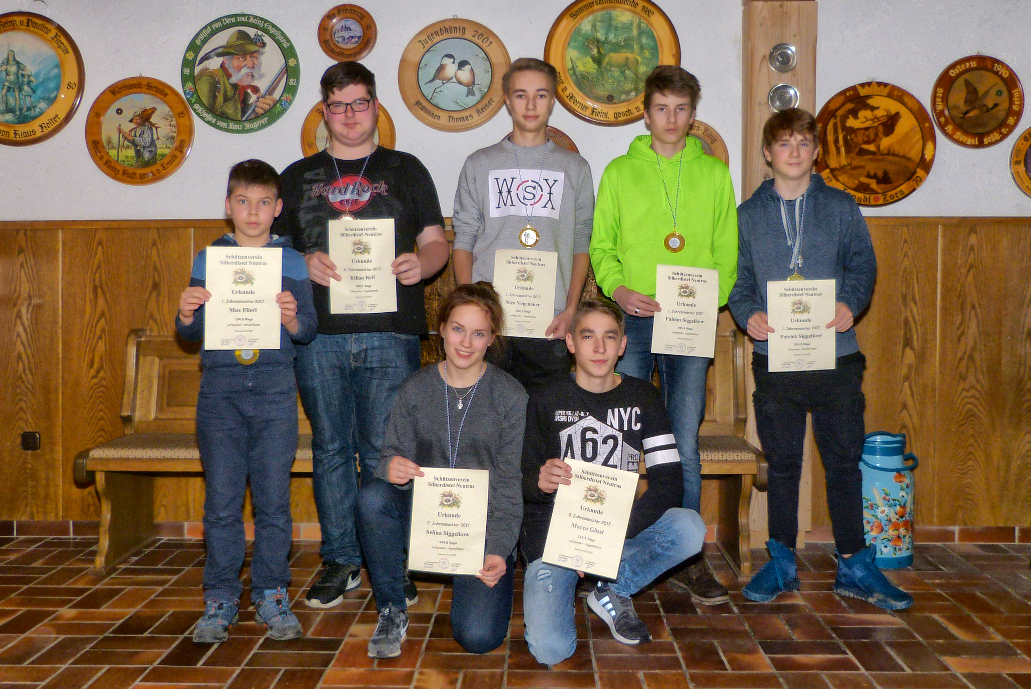 Um sich für weitere Meisterschaften zu qualifizieren ist die Vereinsmeisterschaft die erste Voraussetzung. Für seine Schützlinge hält Jugendleiter Appel Bernd glänzende Pokale bereit. In der Jugendklasse erscheint wiederholt der Name Siggelkow. So wird Patrick mit der Luftpistole mit 146 Ringen Erster in der Schülerklasse und Bruder Fabian tut es ihm mit 346 Ringen in der Jugendklasse gleich. Schwester Selina belegt in der Jugendklasse mit dem Luftgewehr mit 355 Ringen den ersten Platz. Vogenauer Nico folgt auf Platz 2 mit 348 Ringen und Gössl Marco wird Dritter mit 284 Ringen. In der LG Schülerklasse kann sich Flierl Max den ersten Platz mit 146 Ringen sichern. Meidinger Leon hat mit 132 Ringen die Nase vorn beim Luftgewehr Aufgelegt, gefolgt von seinem Nachbarn Wurzer Luca, der 119 Ringe schafft.