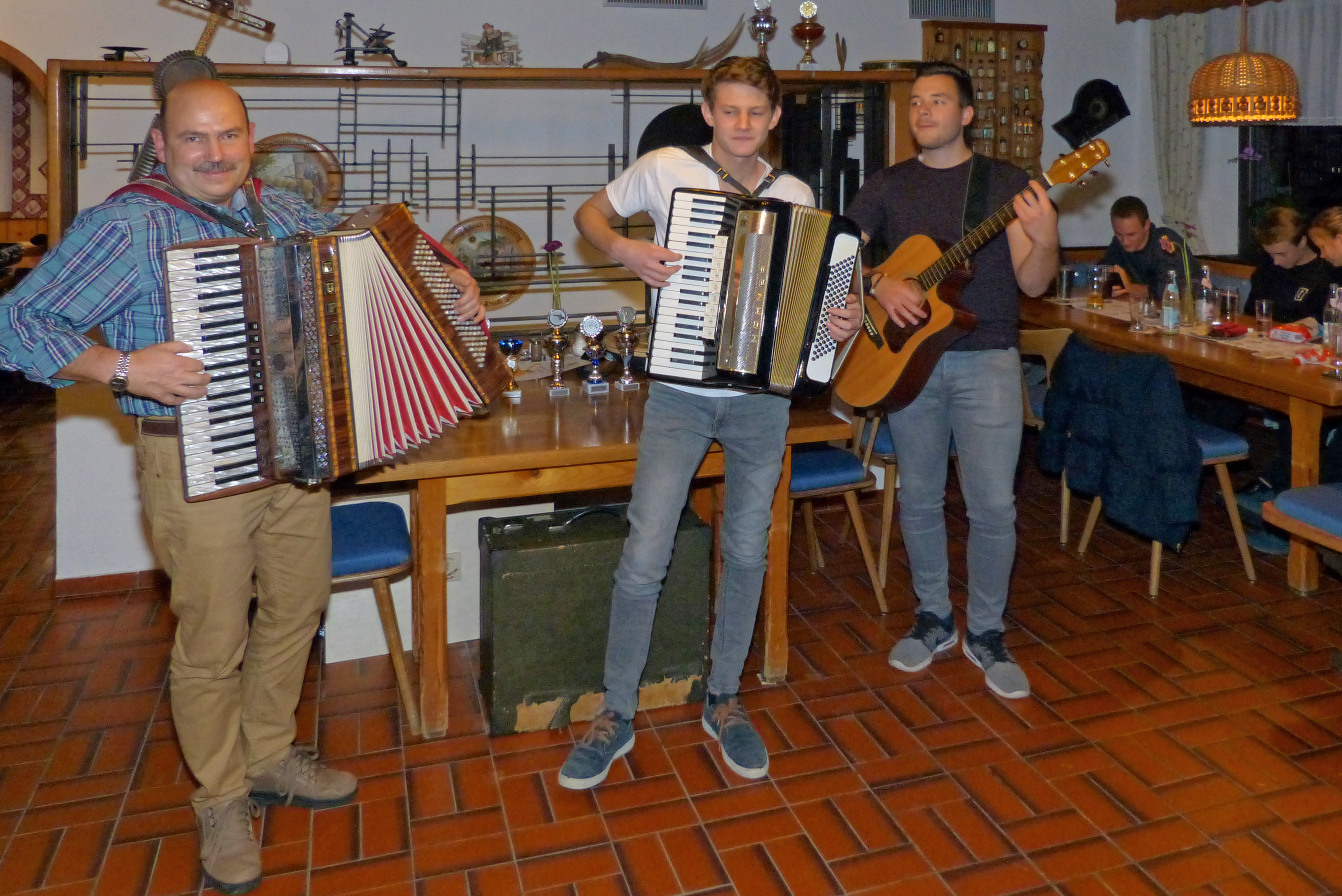 Die Königsfeier im Gasthof „Zum Neutrasfelsen“ wird bestens musikalisch gestaltet und umrahmt von Gerald, Andreas und Michael.