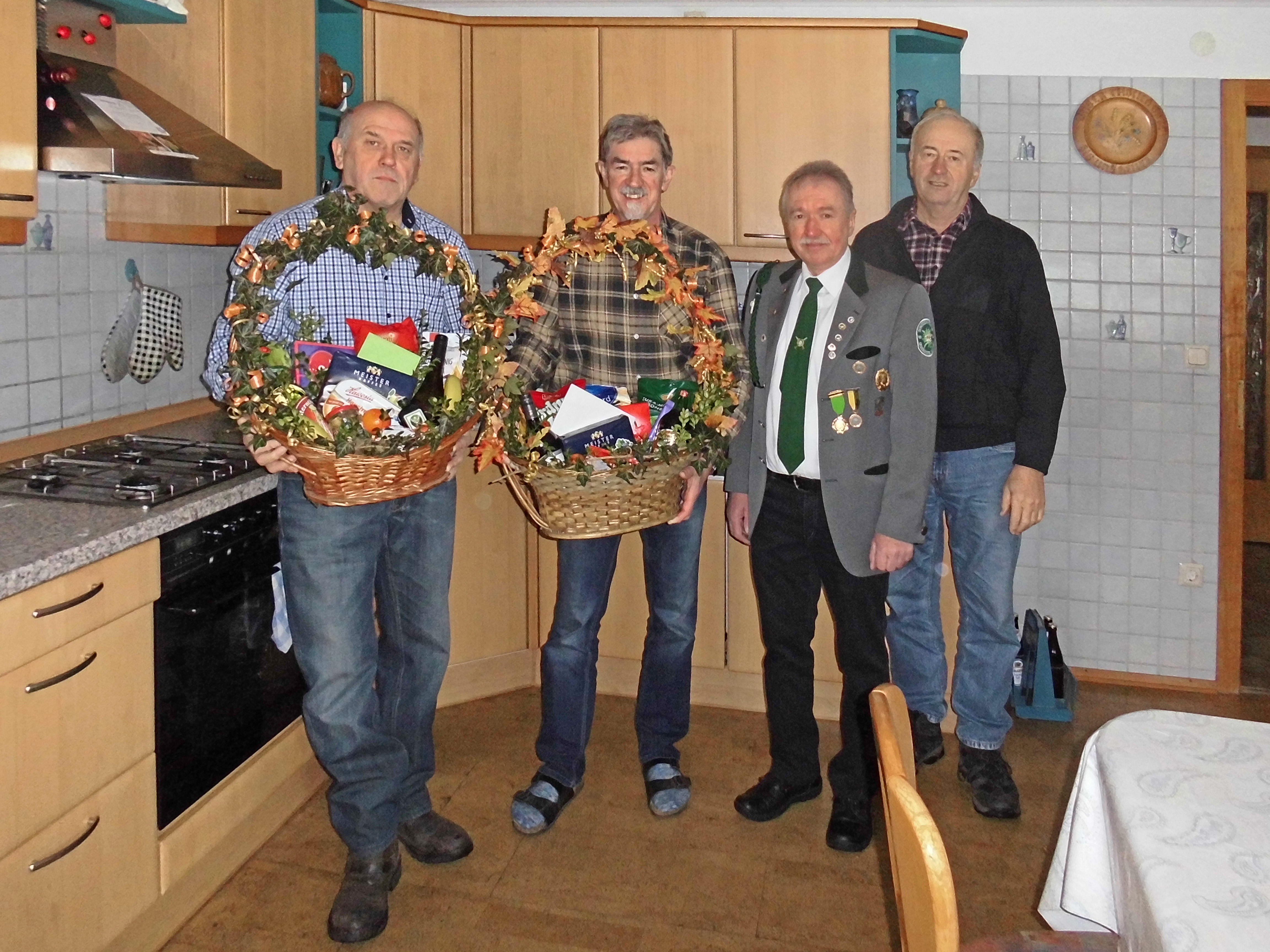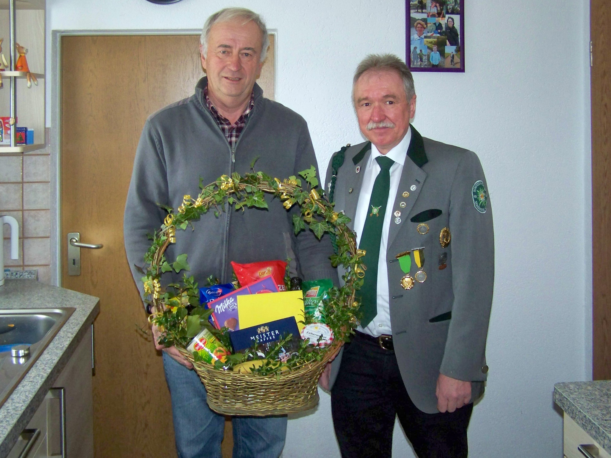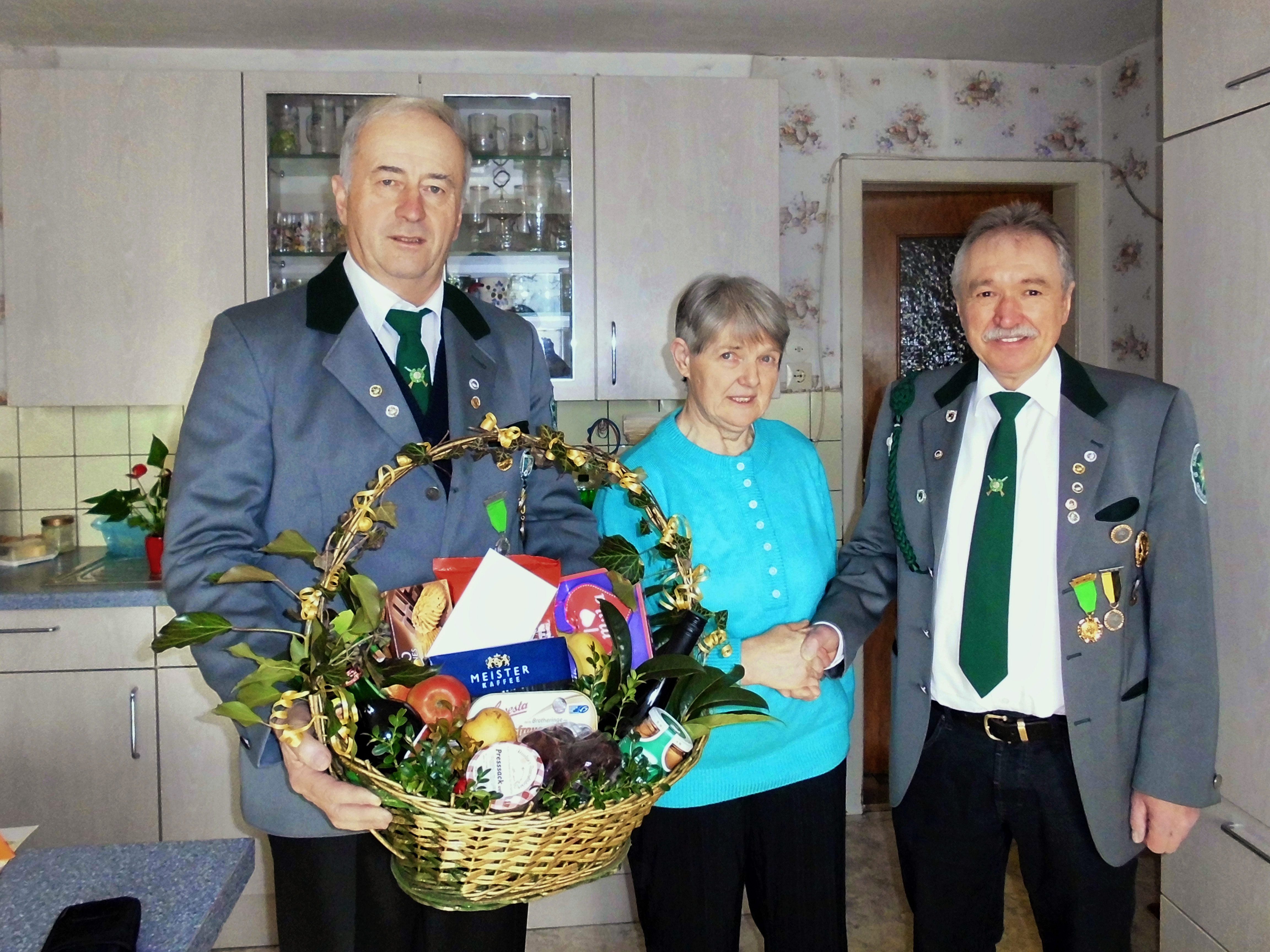 Die Glückwünsche des Vereins, verbunden mit einem Geschenkkorb, überbrachten unser erster Schützenmeister Schwab Rudi und Revisor Haller Gerd.