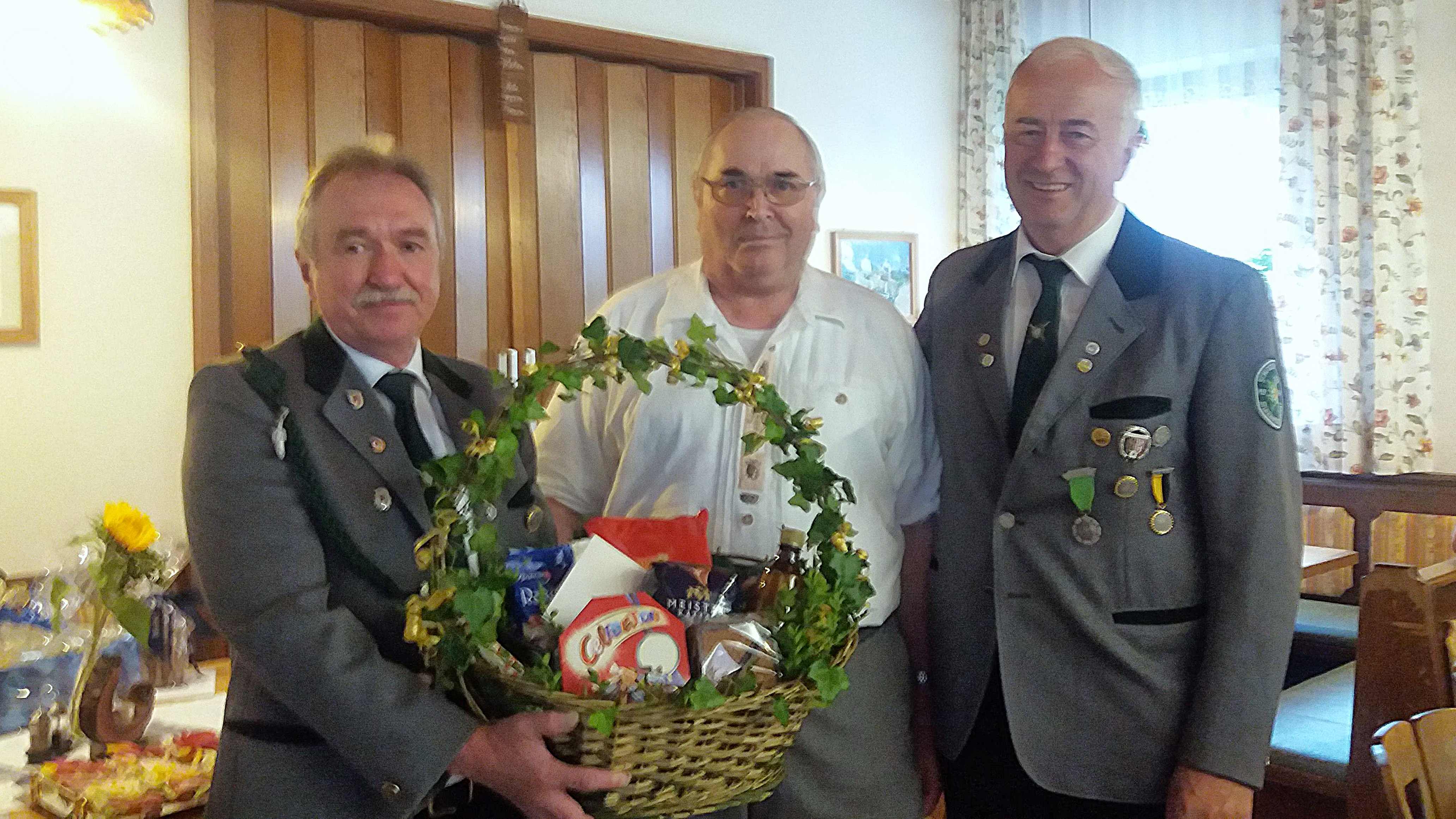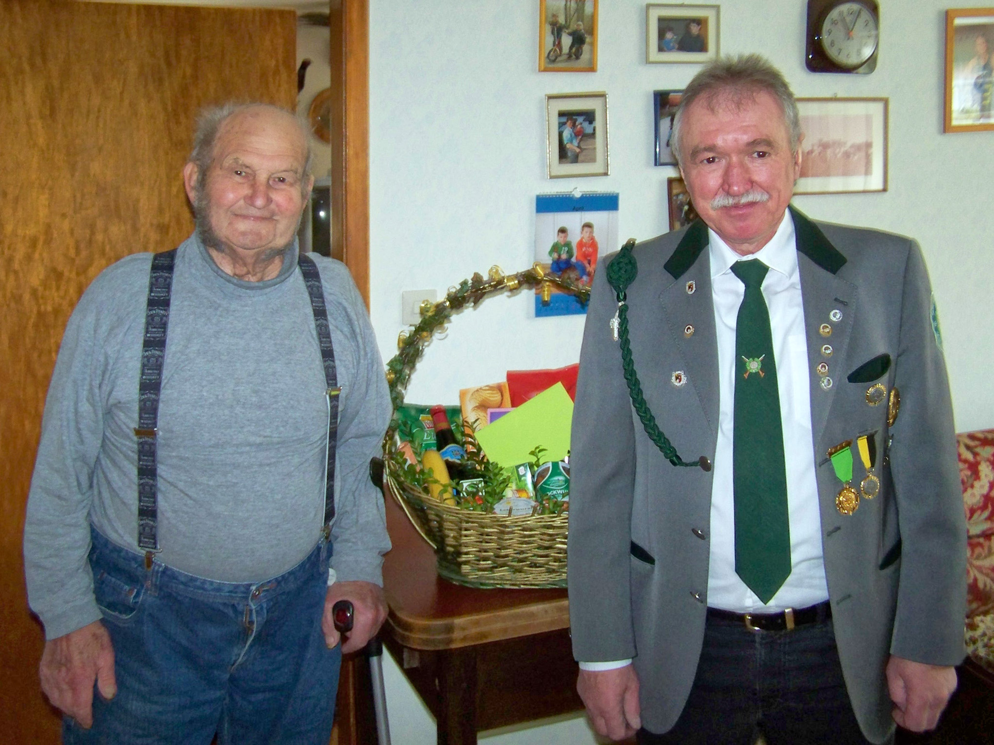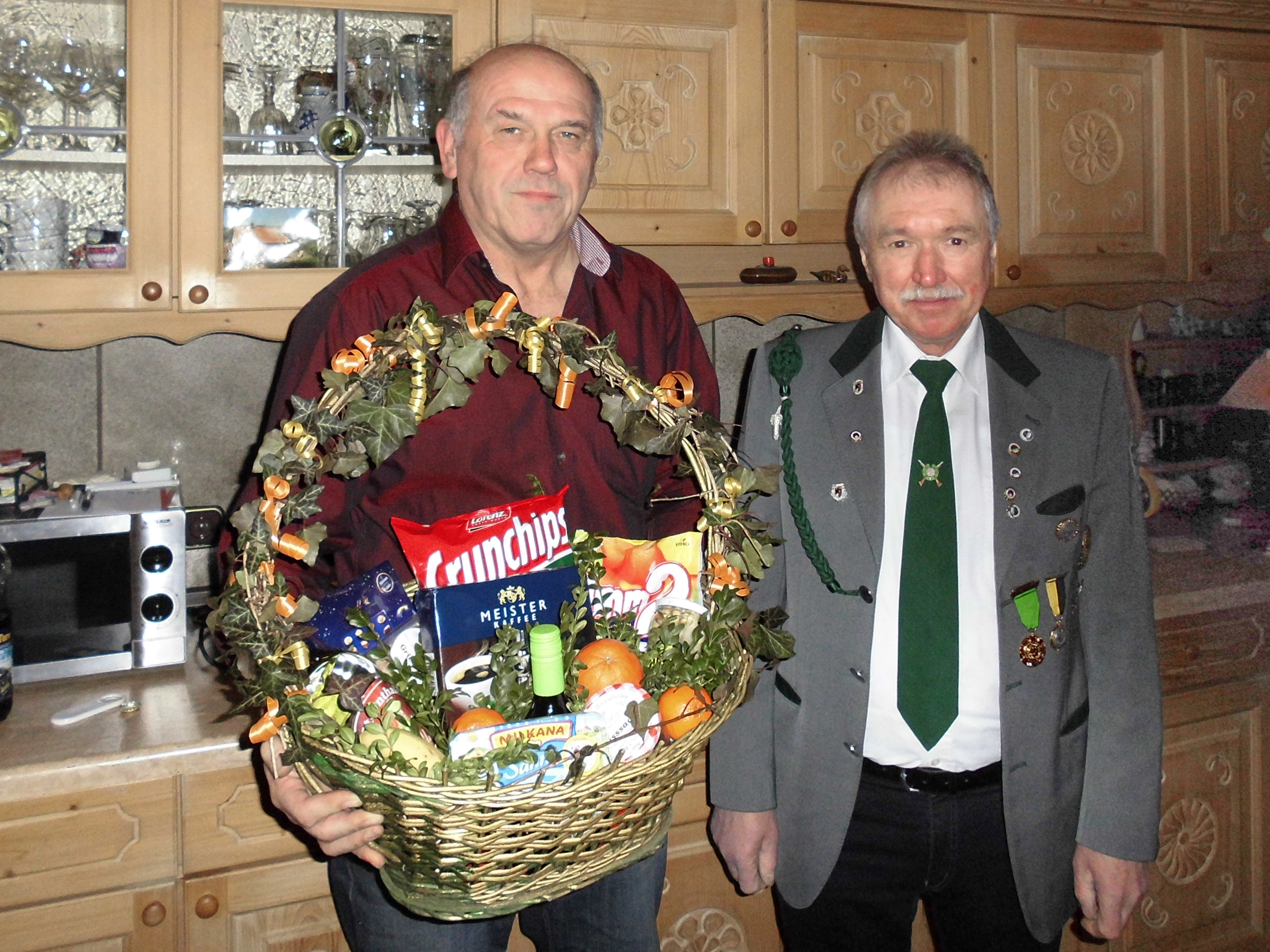 Die Glückwünsche des Vereins, verbunden mit einem Geschenkkorb, überbrachten unser erster Schützenmeister Schwab Rudi und Revisor Haller Gerd.
