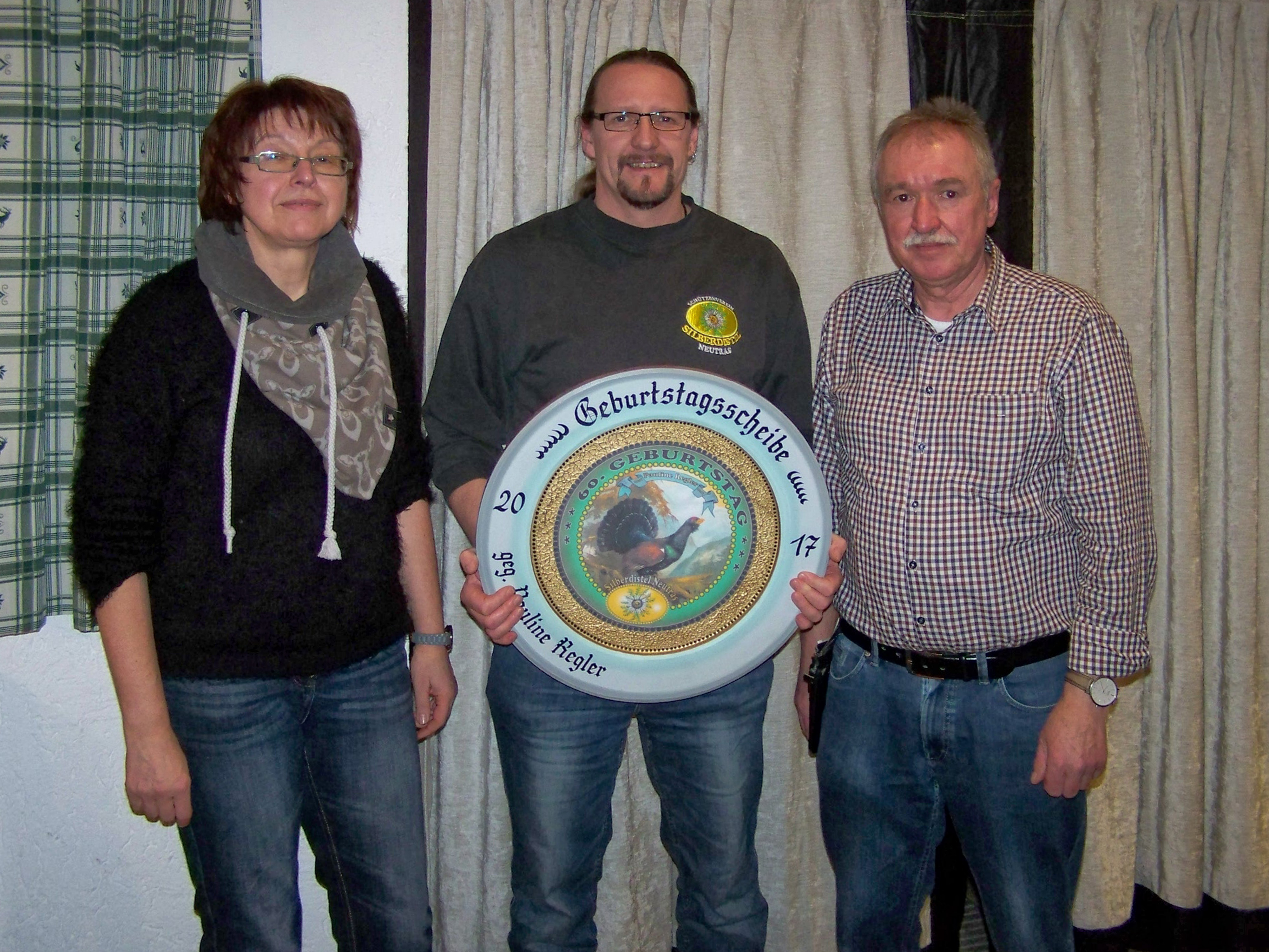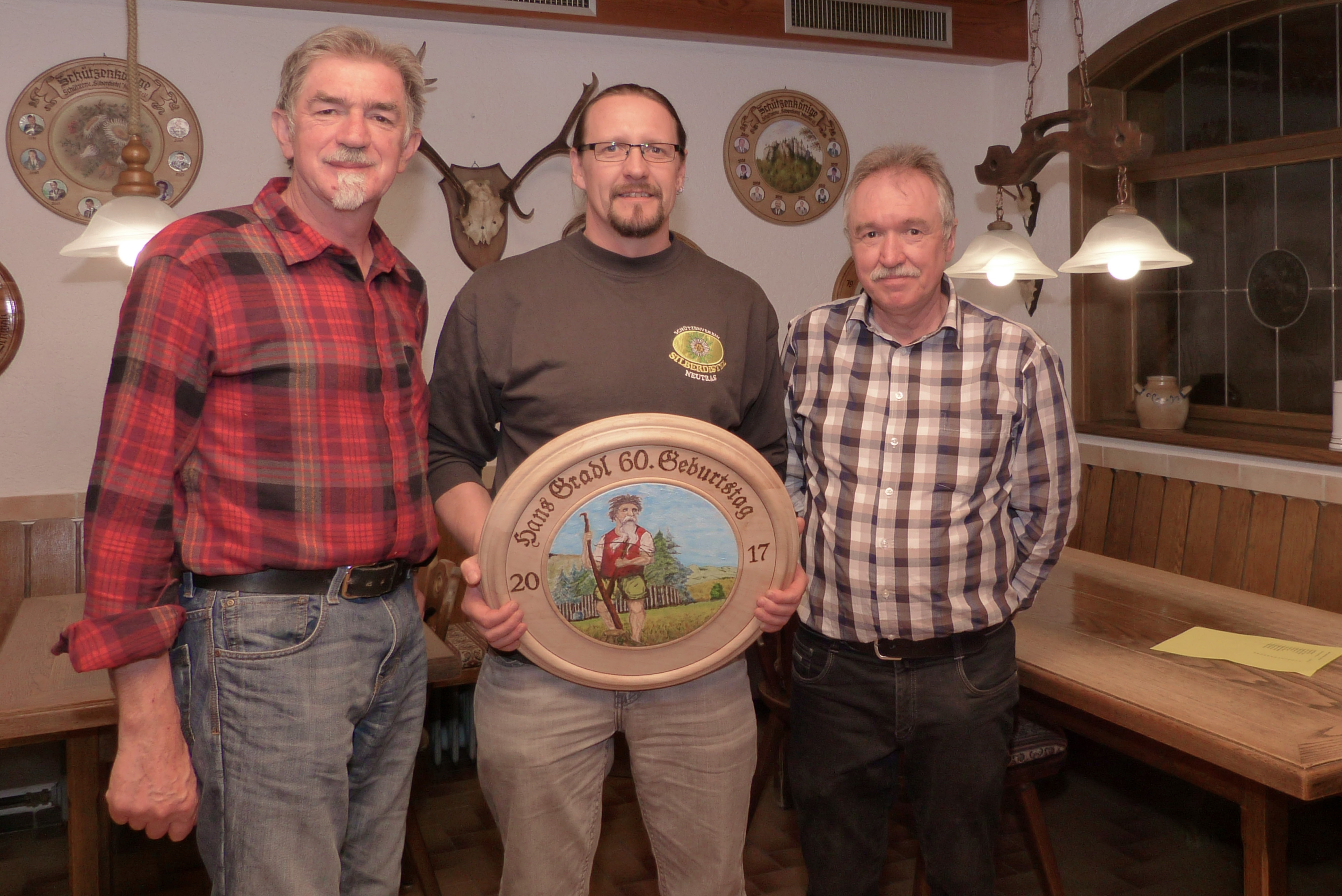 Zum Geburtstagspreisschießen des ersten Quartals 2017 stiftete Gradl Hans aus Anlass seines 60. Geburtstages, den er in diesem abgelaufenem Vierteljahr beging, eine von ihm selbst gemalte Scheibe.