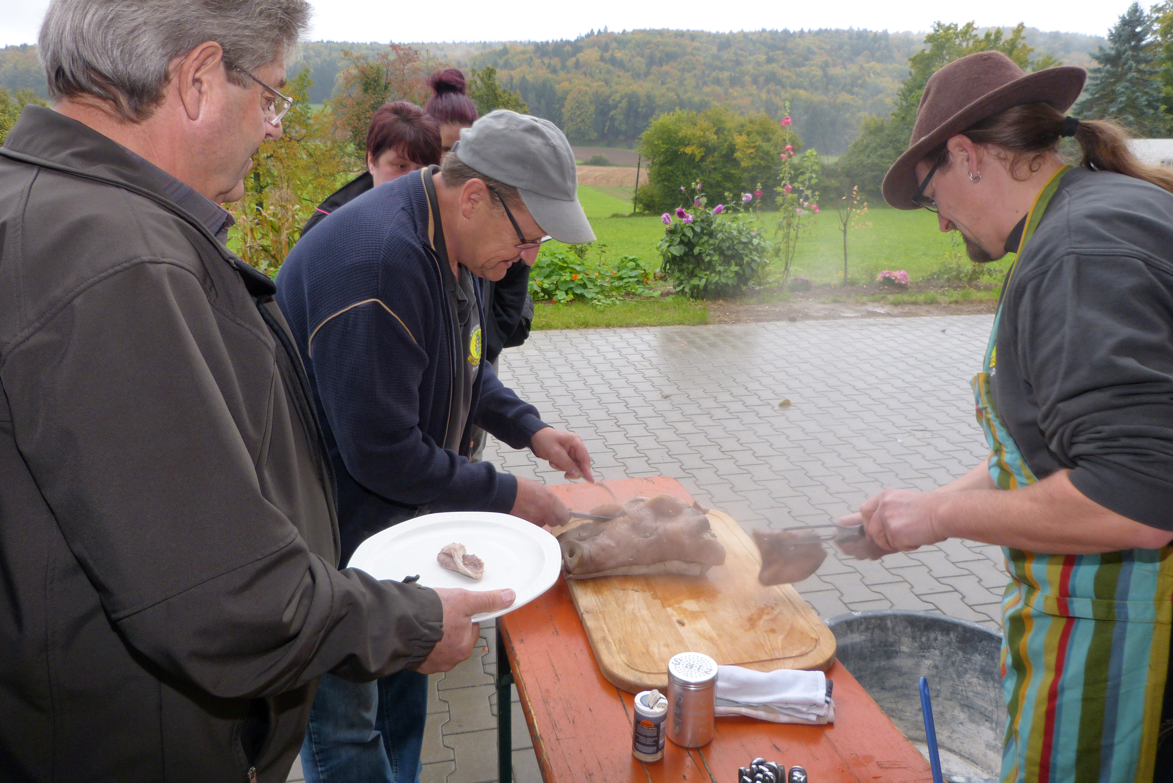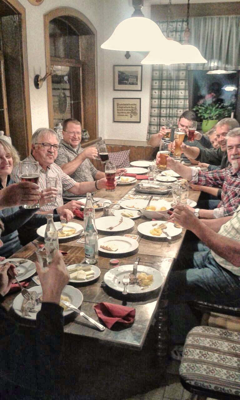 Für den Abend tischen die Wirtsleute Helga und Rudi den Teilnehmern ein wunderbares Essen auf: Herrlichen Braten mit Knödel, Kartoffelsalat und Kartoffeln - es mundet, wie man am erforderlichen Nachschub sehen kann. Vielen Dank an die Beiden. Damit klingt das Schützenjahr 2017 aus.