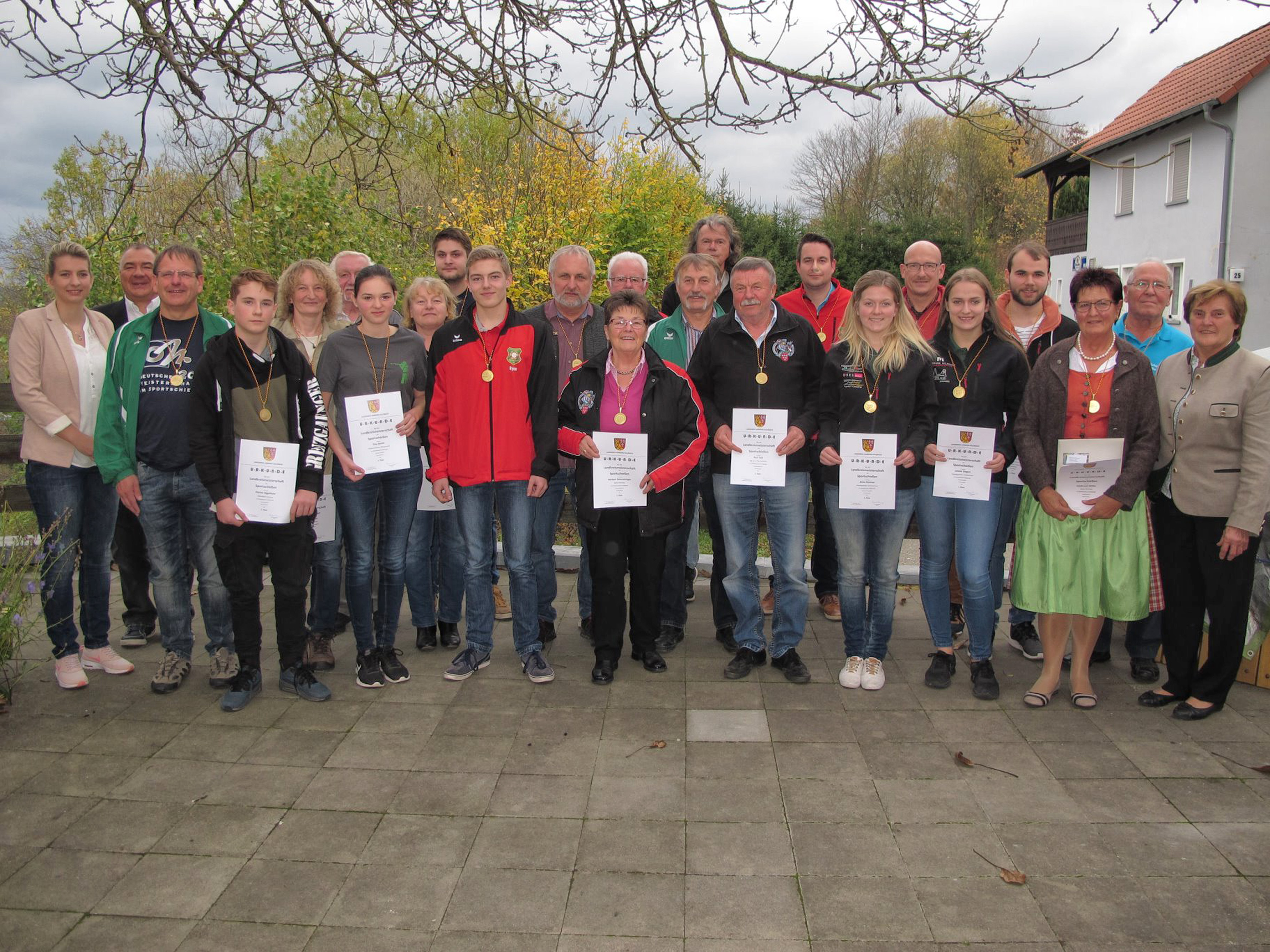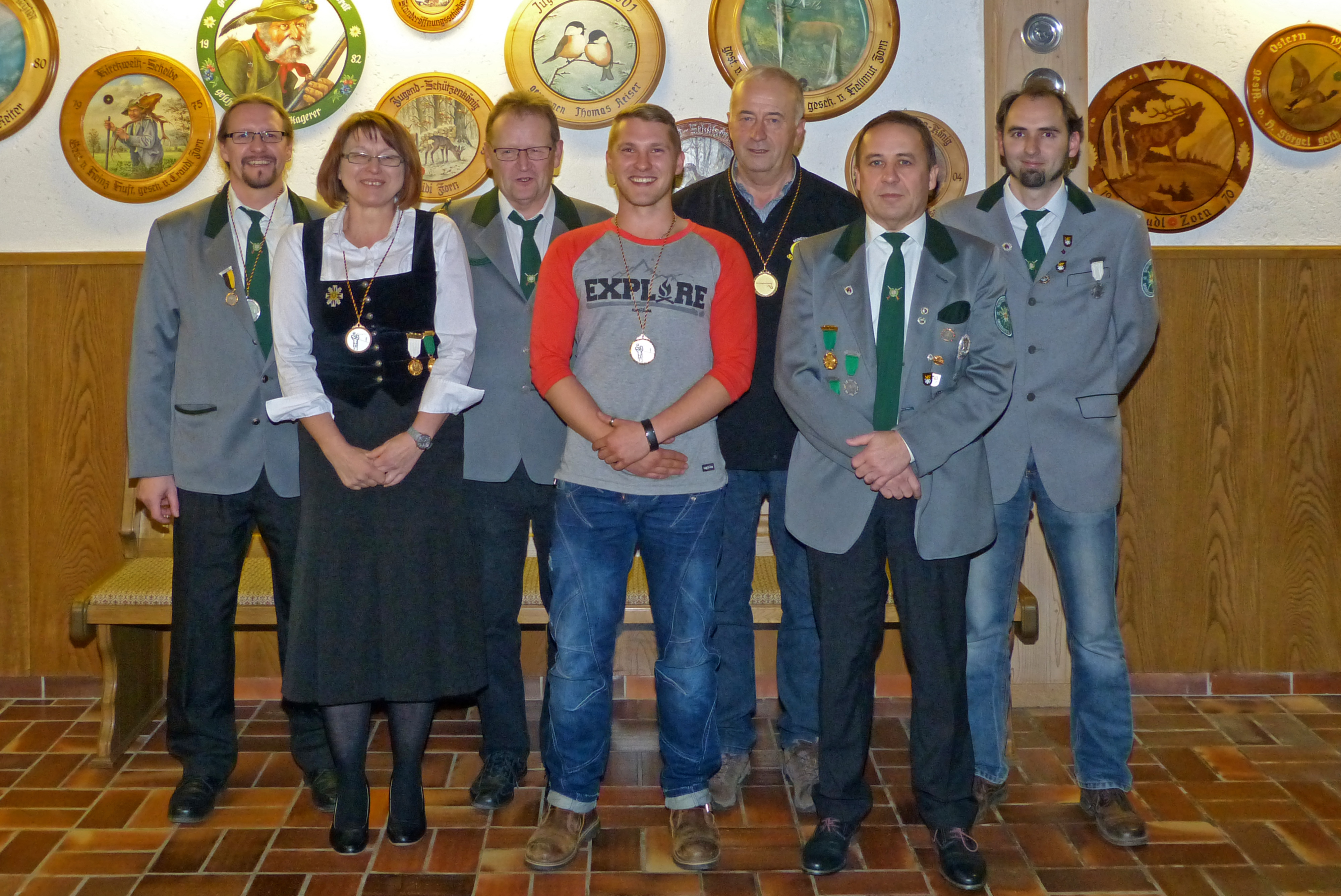 Oberschießleiter Georg Appel gibt die Leistungsstärksten in der Disziplin Luftgewehr Schützenklasse bekannt. Auf dem ersten Platz steht John Oliver Gohl mit einer Durchschnittsringzahl von 370,5 und einer besten Serie mit 379 Ringen. Ihm folgen, sehr dicht, Bernd Appel (Durchschnitt: 369,8 Ringe/ beste Serie: 376 Ringe) und Pauline Regler (Durchschnitt: 367,9 Ringe/ Beste Serie: 378 Ringe). In der Disziplin Luftpistole Schützenklasse belegt Michael Loos mit einem Durchschnitt von 371 Ringen und einer besten Serie mit 374 Ringen den Platz eins. Ihm folgen sein Bruder Johannes (Durchschnitt: 351,5 Ringe/ beste Serie: 356 Ringe) und Georg Appel (Durchschnitt: 347,9 Ringe/ beste Serie: 355 Ringe). Die jeweils drei Erstplatzierten erhielten Urkunden.