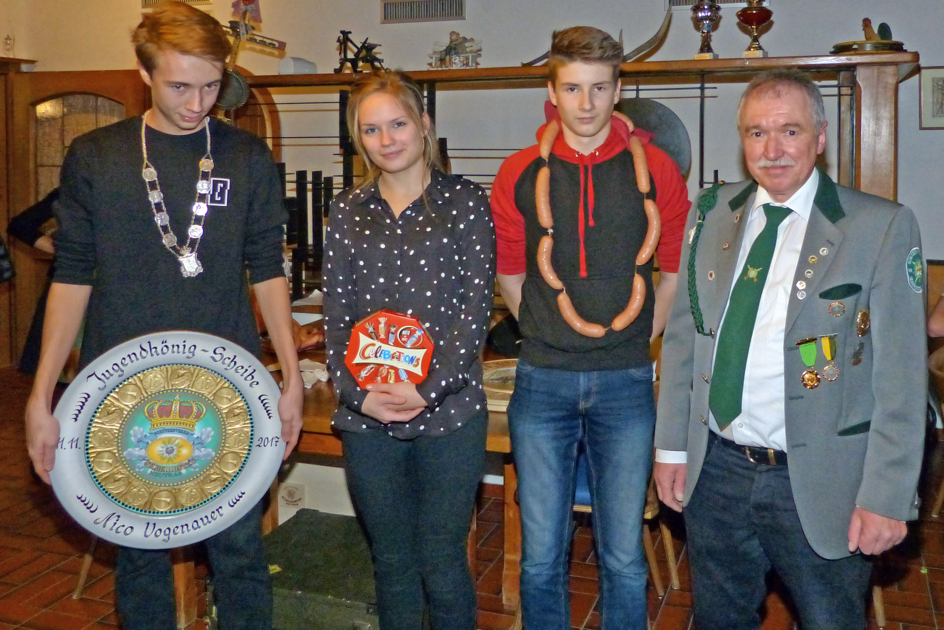 Für ein Jahr wird nun Appel Georg der Träger der überholten Königskette sein. In der Jugendklasse wird Vogenauer Nico mit einem 228 Teiler neuer Jugendkönig. Als Ritter stehen ihm Siggelkow Fabian mit einem 351 Teiler und die vorherige Jugendköniging, Siggelkow Selina mit einem 597 Teiler zur Seite.