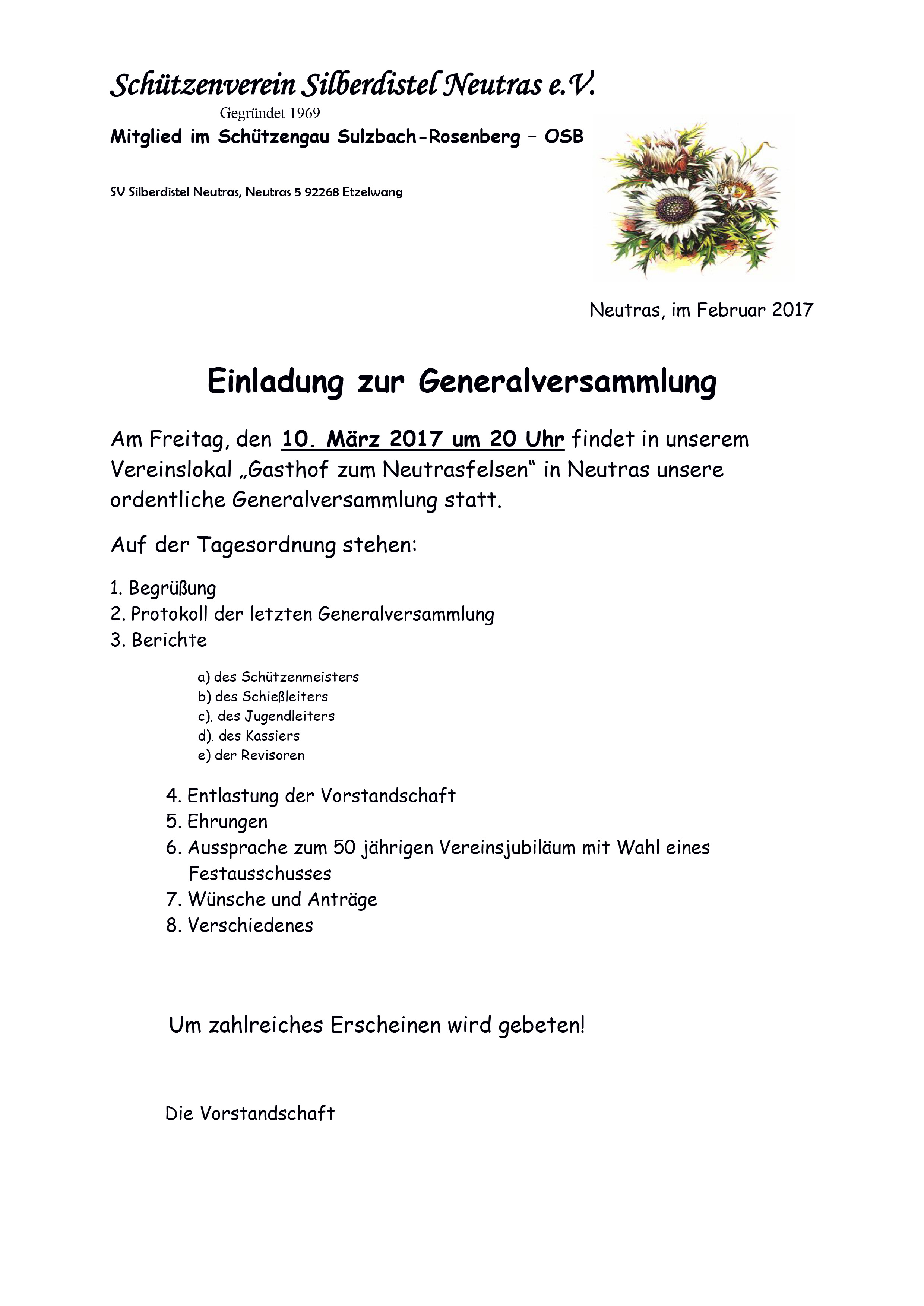 Schützenmeister Rudi Schwab begrüßte die Teilnehmerinnen und Teilnehmer. Sein besonderer Gruß galt Ehrenschützenmeister Johann Zimmermann, Altbürgermeister und Ehrenmitglied Ludwig Heinl, den Ehrenmitgliedern Hellmut und Traudl Zorn, sowie Edi Pickel und nicht zuletzt dem Schützenkönig Rainer Siggelkow und der Jugendkönigin Selina Siggelkow. Anschließend gab er nochmals die Tagesordnung bekannt, gegen die es keine Einwände gab.