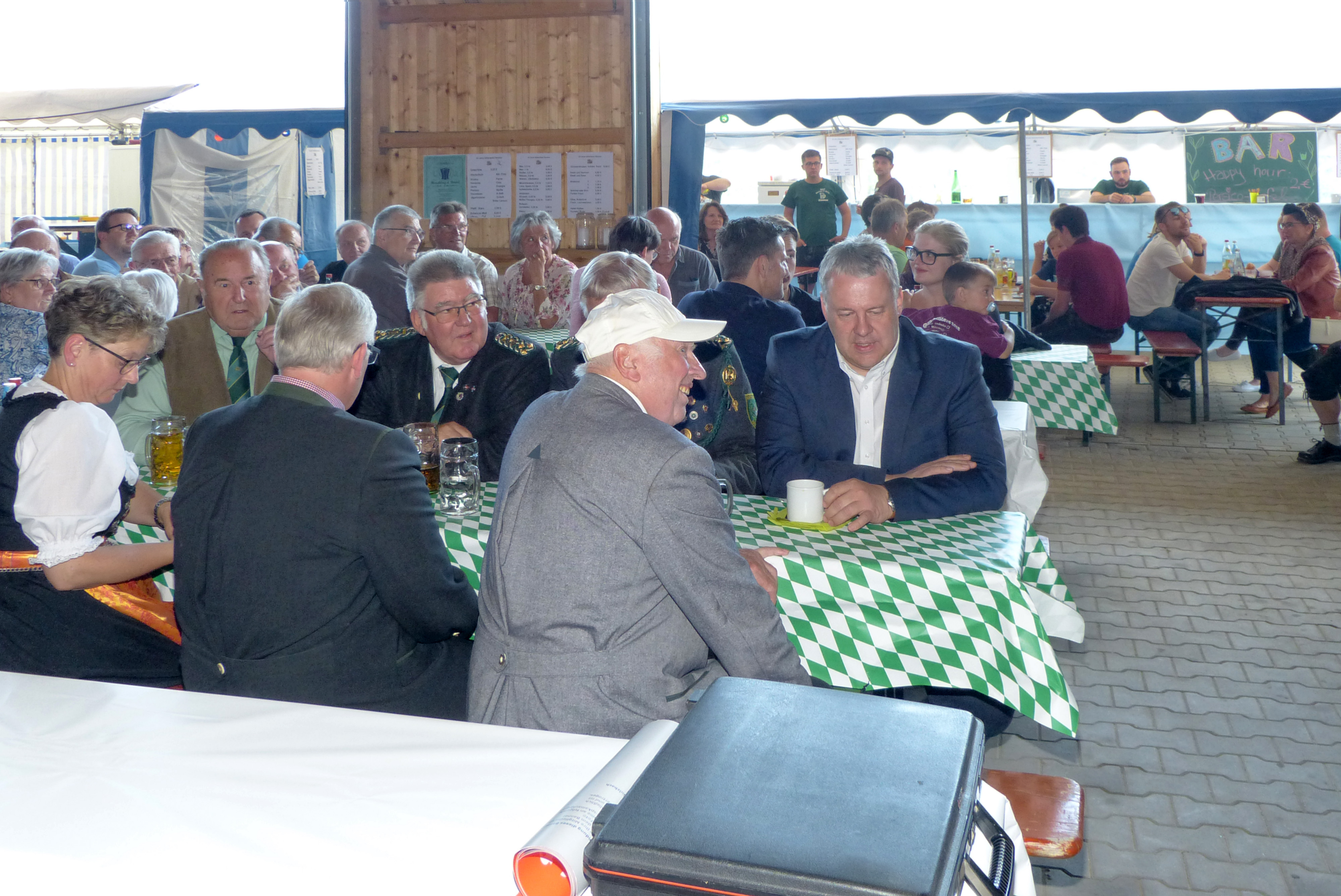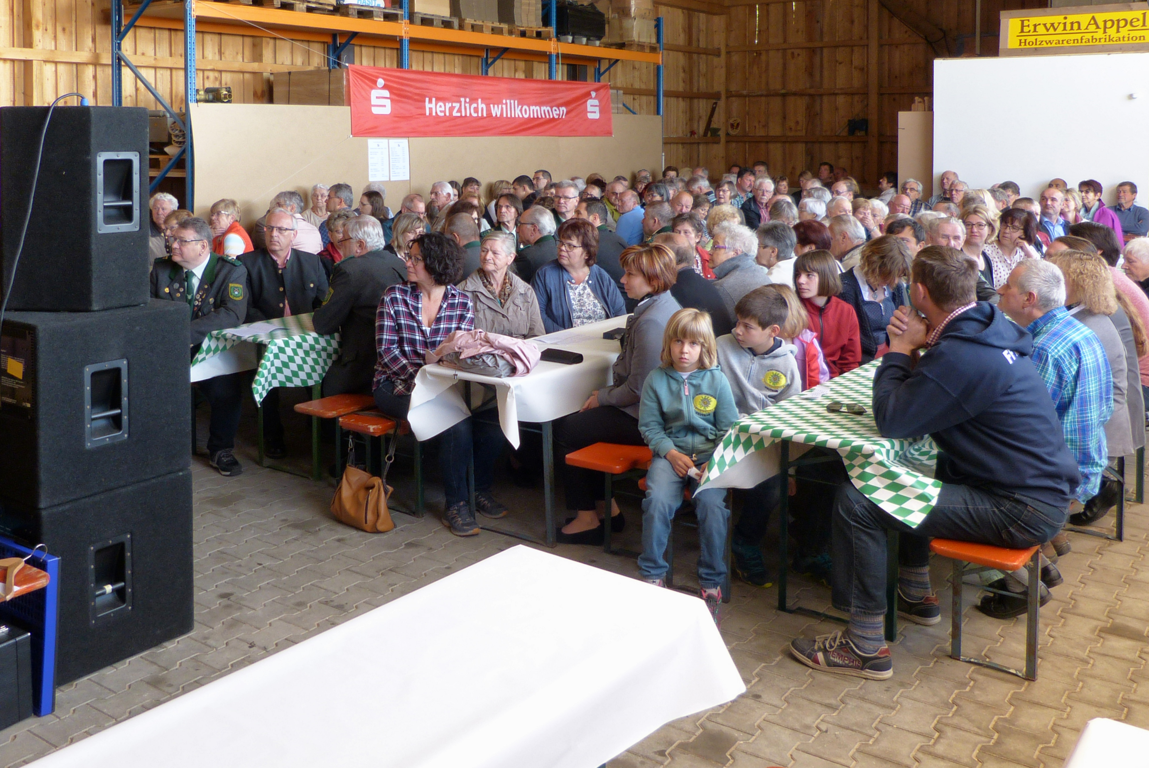 Durch die schöne Witterung sind nach kurzer Zeit nicht nur alle Plätze in der Halle belegt. Im Hof und auf der