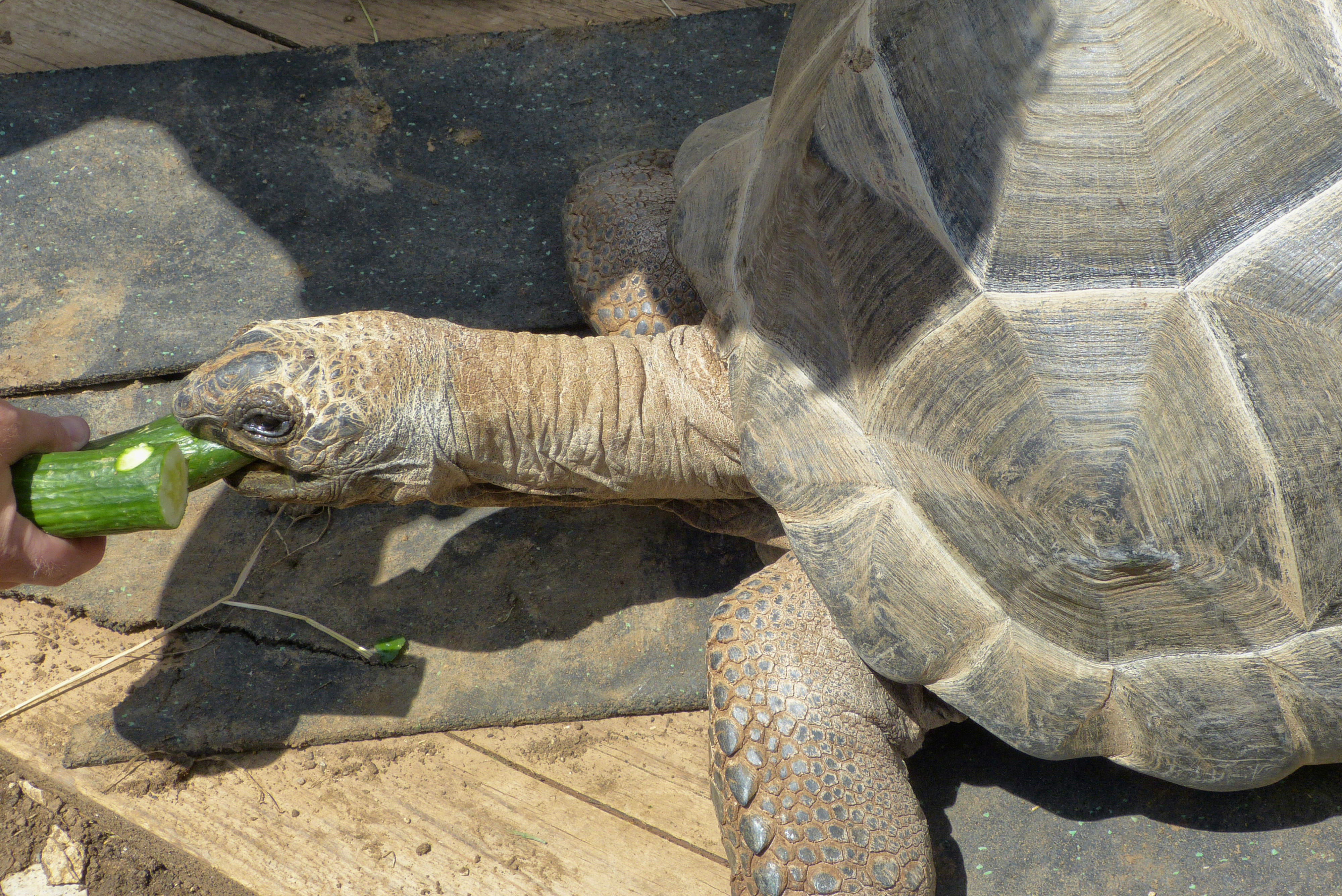 Wie schon seit einigen Jahren an Fronleichnam, steht auch heuer wieder die Schützenwanderung an. Oberschießleiter Schorsch hat diesmal als Auftakt zur Wanderung einen außergewöhnlichen Punkt mit angekündigt. Was die Allerwenigsten wissen und schon gar nicht kennen, ist , dass es in Edelsfeld eine Schildkrötenfarm gibt. Diese betreibt seit neun Jahren in Eigenregie die ganze Familie Kopp ( Jennifer mit Ehemann Patrick, den Kindern und der Schwiegermutter) in der Bergwiesenstraße. Schorsch hat den Besuch für 13:00 Uhr arrangiert. Wir treffen uns am Friedhofsparkplatz und marschieren von dort zur Farm. Nach dem Klingeln an der Gartentüre werden wir von Jenny und Patrick herzlich begrüßt. Alle sind wir erstaunt, dass die Farm den ganzen Garten umfasst. In verschieden große Areale unterteilt und mit Unterkünften versehen, leben hier vierzehn verschiedene Arten von Schildkröten, man kann sagen, fast aus der ganzen Welt stammend. Dies erfahren wir von den beiden erfolgreichen Besitzern und Züchtern. Die zwei größten Exemplare, Elli und Manni, jedes ca. 130 kg schwer, sind natürlich das Highlight. Das älteste Tier in ihrem Besitz , Maggie, lebte bereits im Jahre 1903. Wir erfahren viel über Haltung, Fütterung, Erwerb, Nachzucht und den Papierkram, den die Kopp´s mit den Tieren haben. Aber sie machen dies mit Leidenschaft. Die Zeit vergeht viel zu schnell. Wir verabschieden uns und fahren zum Startpunkt unserer Wanderung.