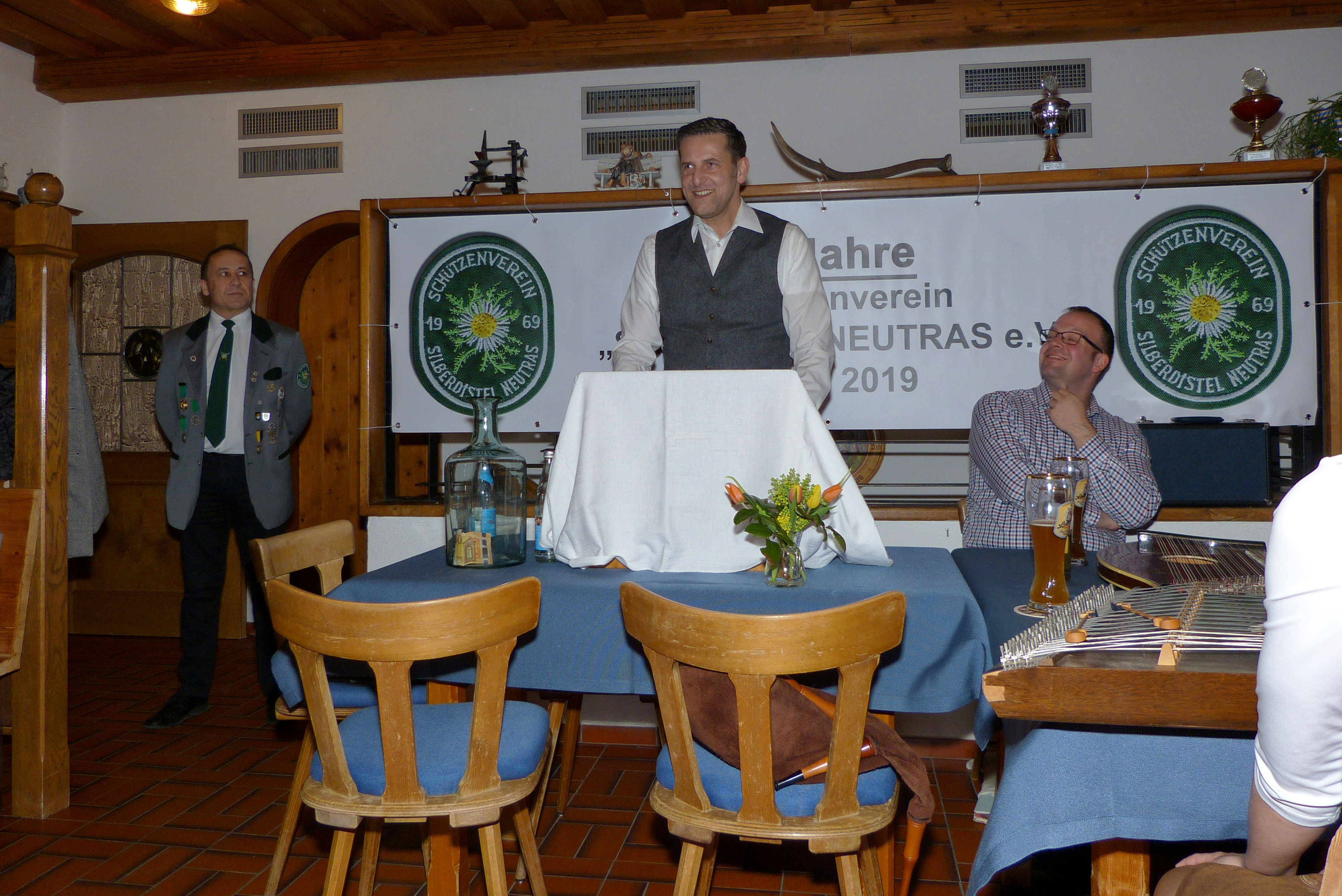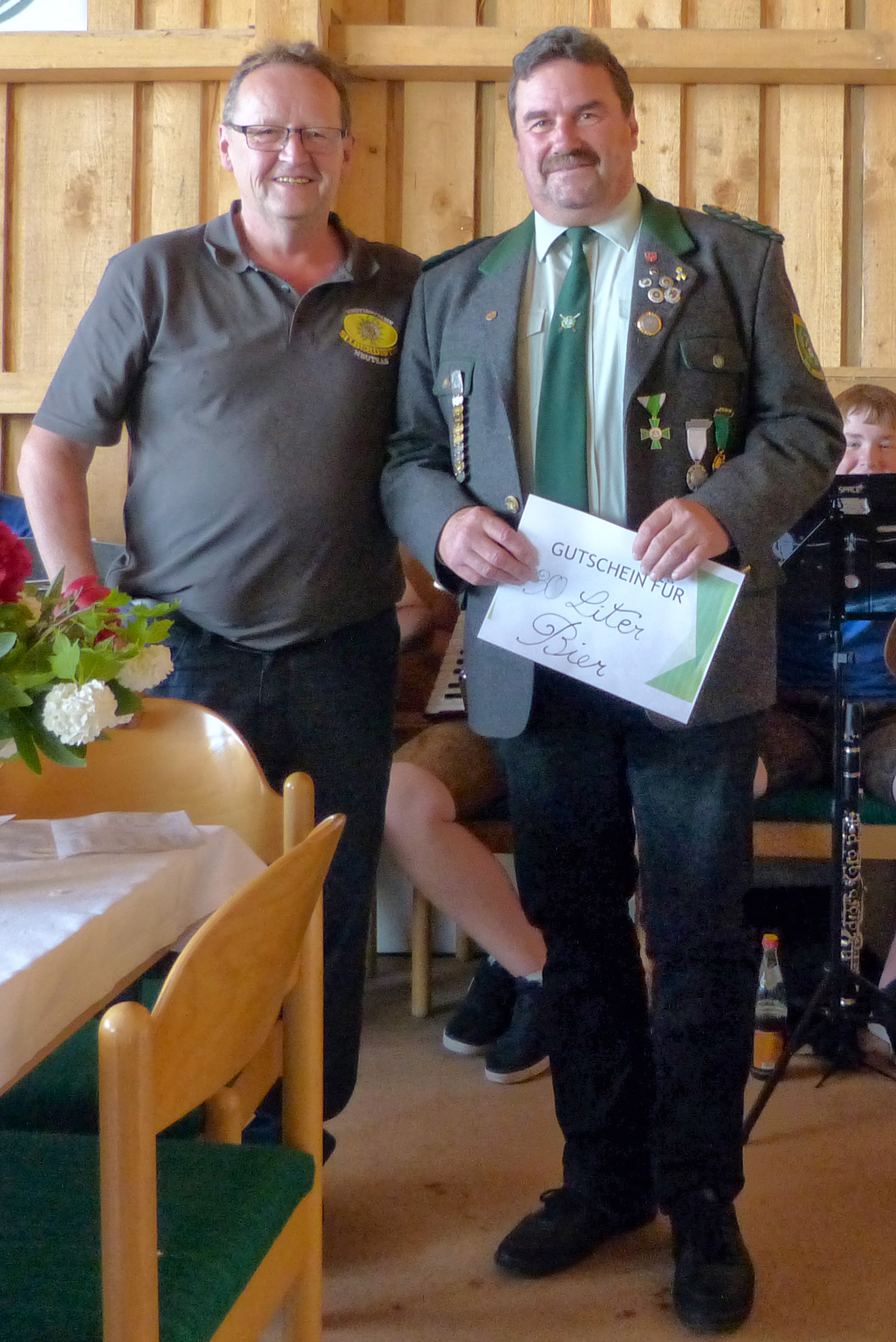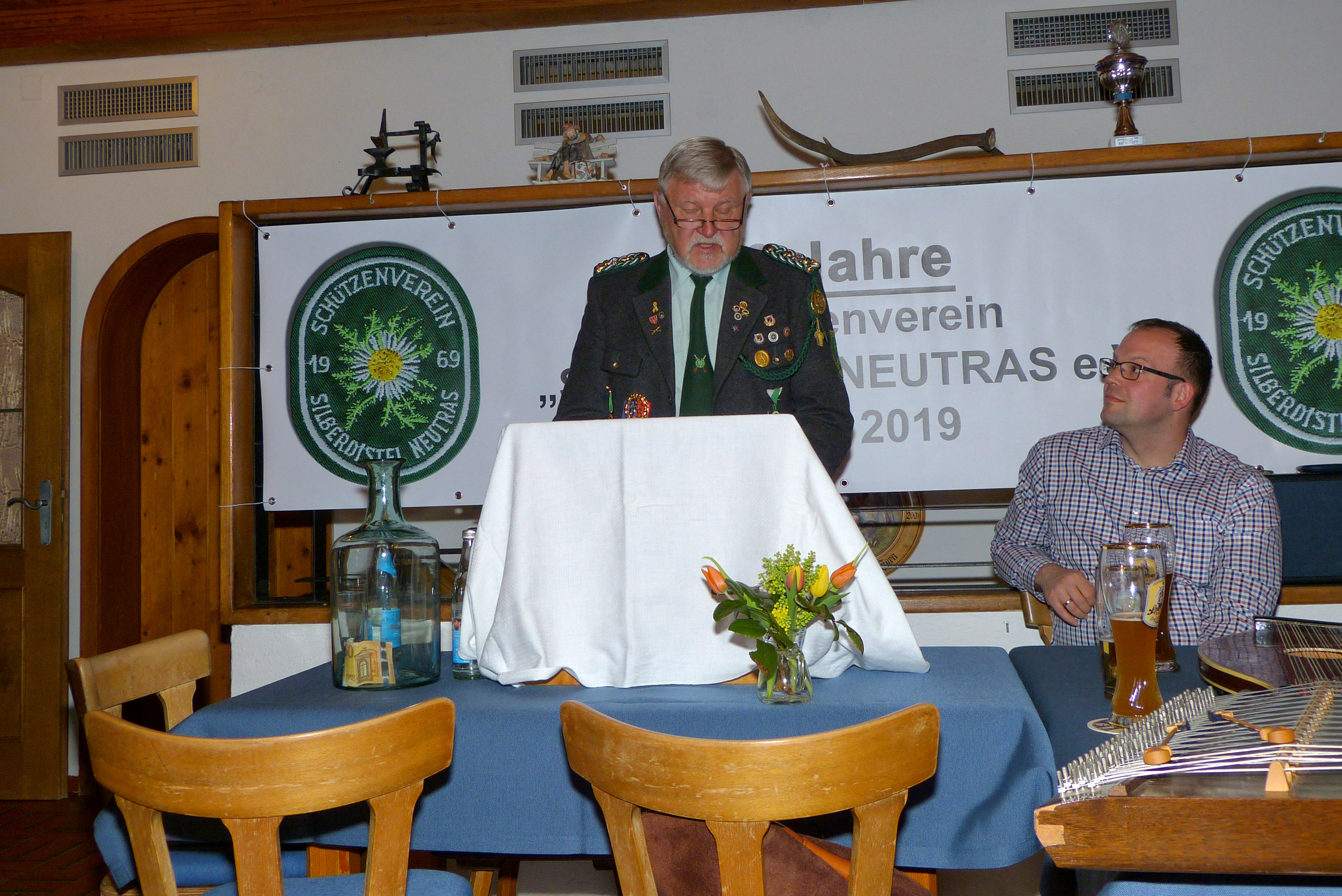 Bevor er eine Vorausschau auf das große Fest gibt, hat der Erste Schützenmeister die angenehme Aufgabe, seinen Vorgänger Rudi Schwab zum Ehrenschützenmeister zu ernennen. Die Versammlung hat dieser Ernennung einstimmig zugestimmt. Als 1994 das 25-jährige Vereinsjubiläum vor der Tür stand, übernahm Rudi Schwab als Erster Schützenmeister von seinem Vorgänger die Leitung des Vereins - dies dann bis 2018. Seit 2012 ist er außerdem noch Wirt und damit Vereinswirt.