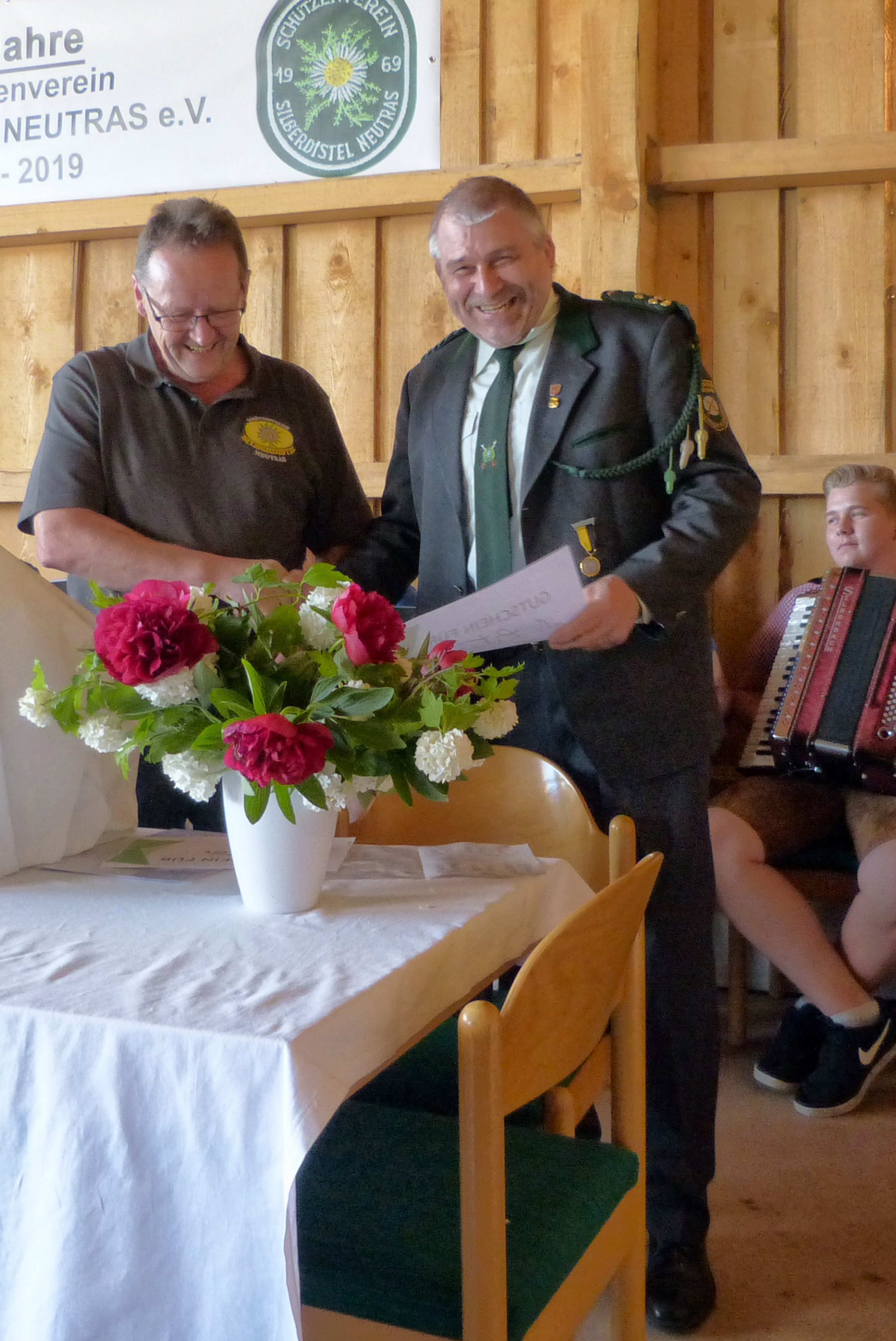 Im Gang spielen unsere beiden Musikanten zum Abschied noch einige Stücke vor der Verabschiedung. - Hier der Link zum Zeitungsbericht der SRZ. -