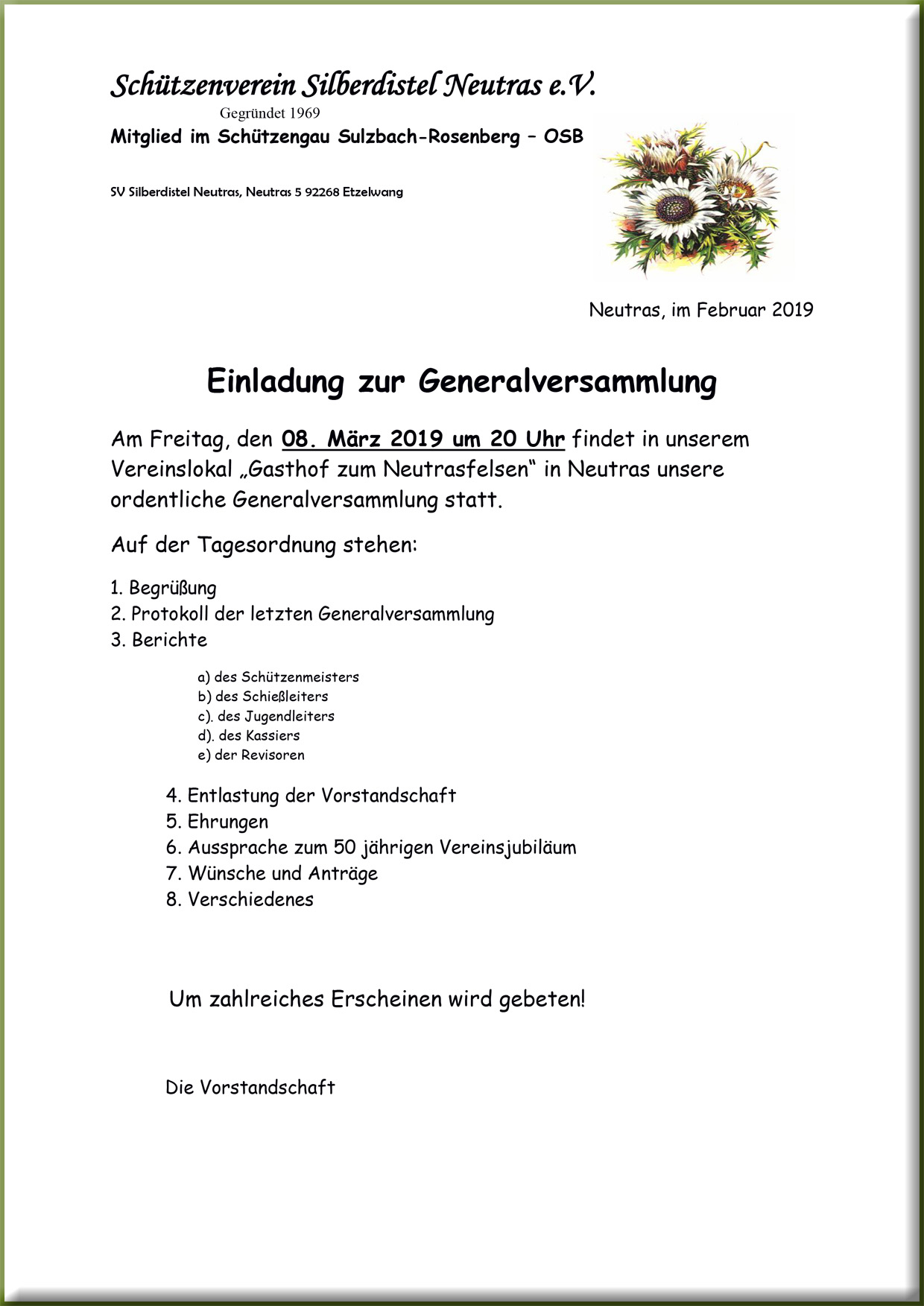 heuer gleich das Jubiläum des fünzigsten Jahrestages der Vereinsgründung.