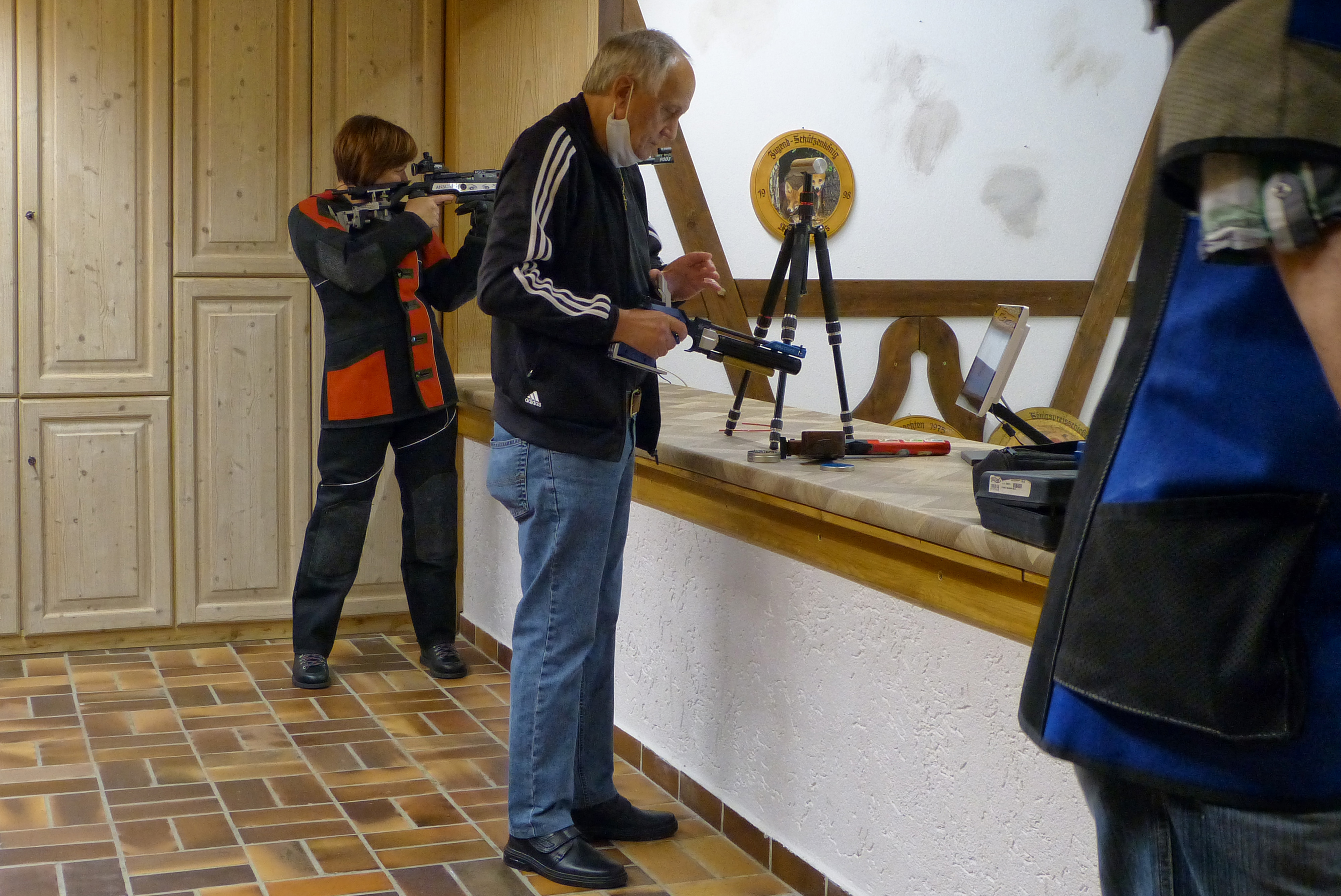 Diesmal klappt es besser. Es nehmen zwar wiederum auch nur dreizehn Aktive daran teil, aber da dies das erste Preisschießen auf den elektronischen Ständen ist, ist es vielleicht so doch besser. Es muss noch allerhand gelernt werden. Da auch nur vier Stände benützt werden dürfen - wegen der Abstandsregelung -, ist die Teilnehmerzahl gar nicht so schlecht, da sich das Schießen sehr in die Länge ziehen würde.