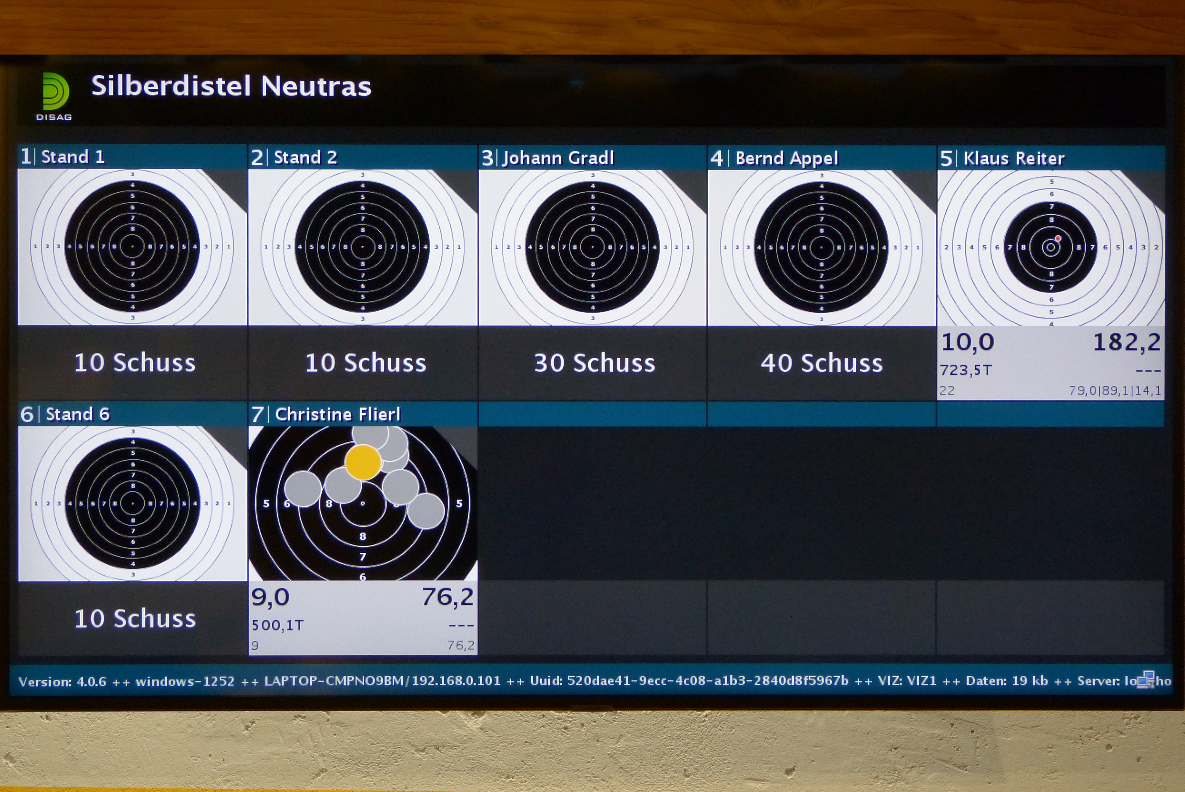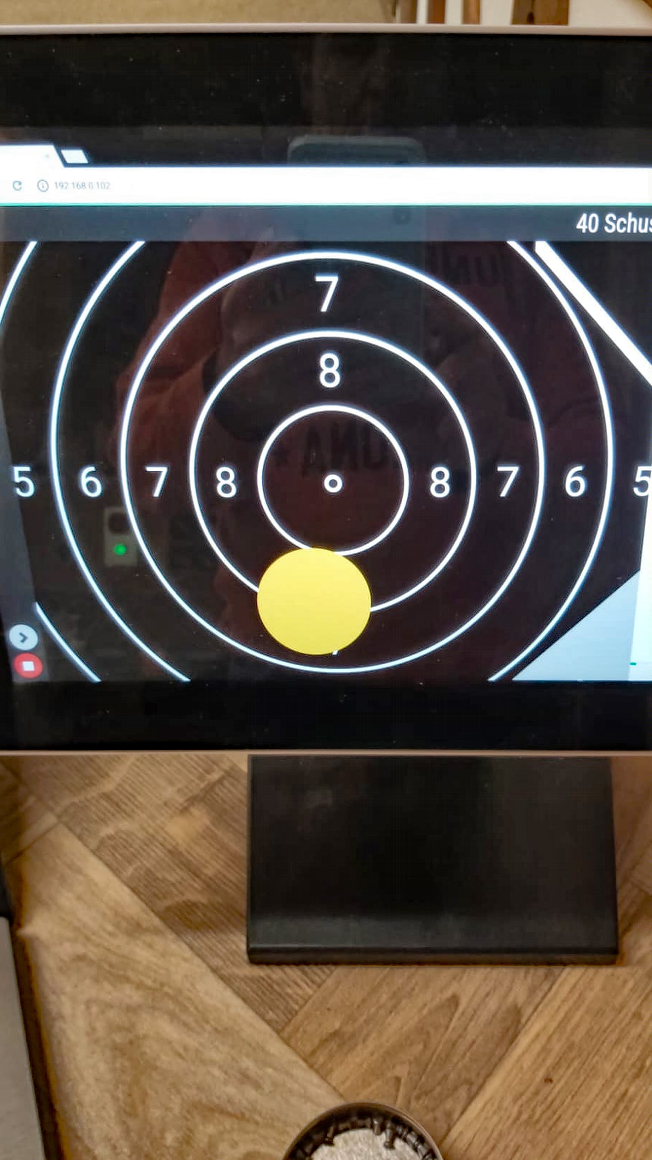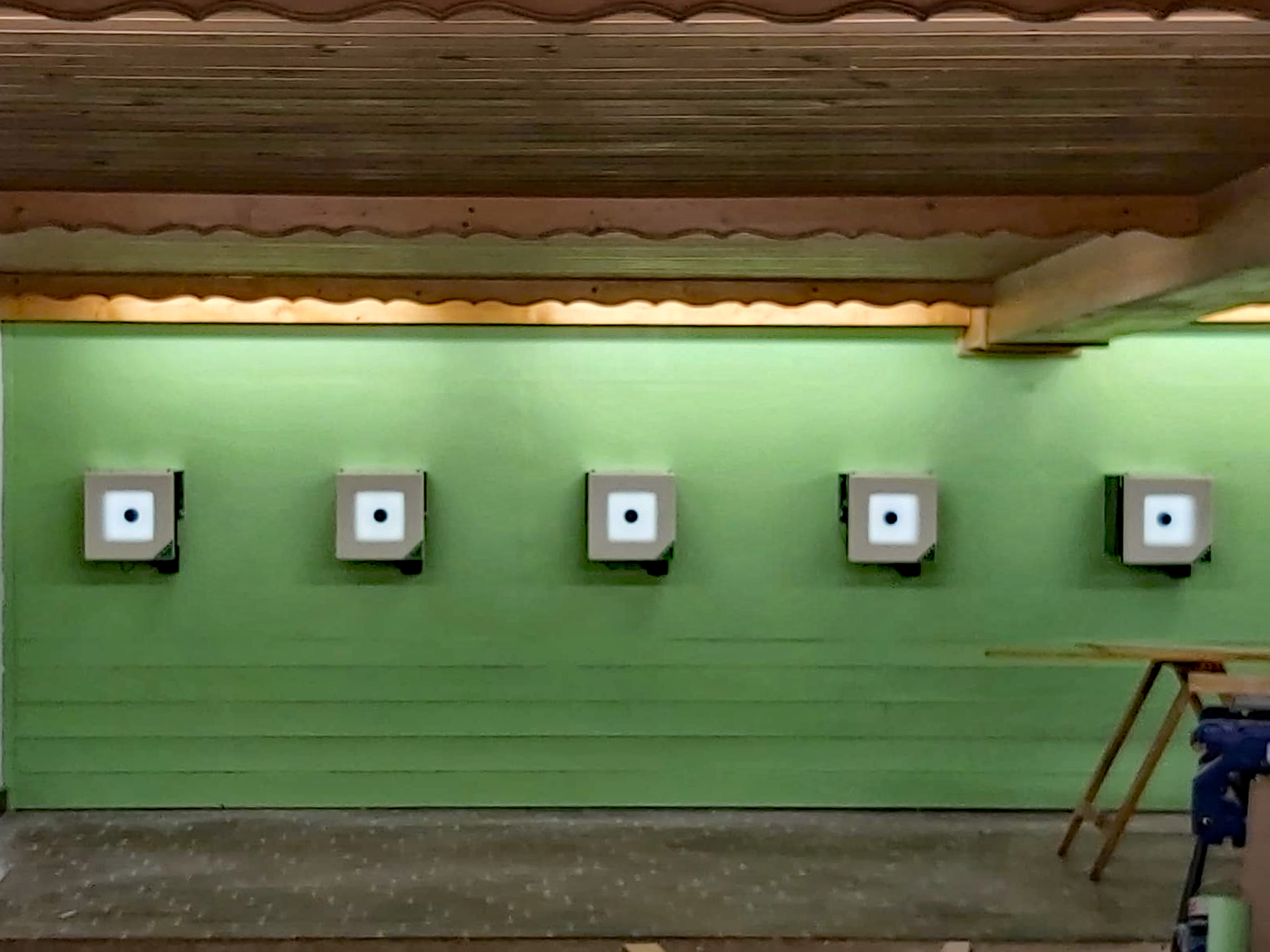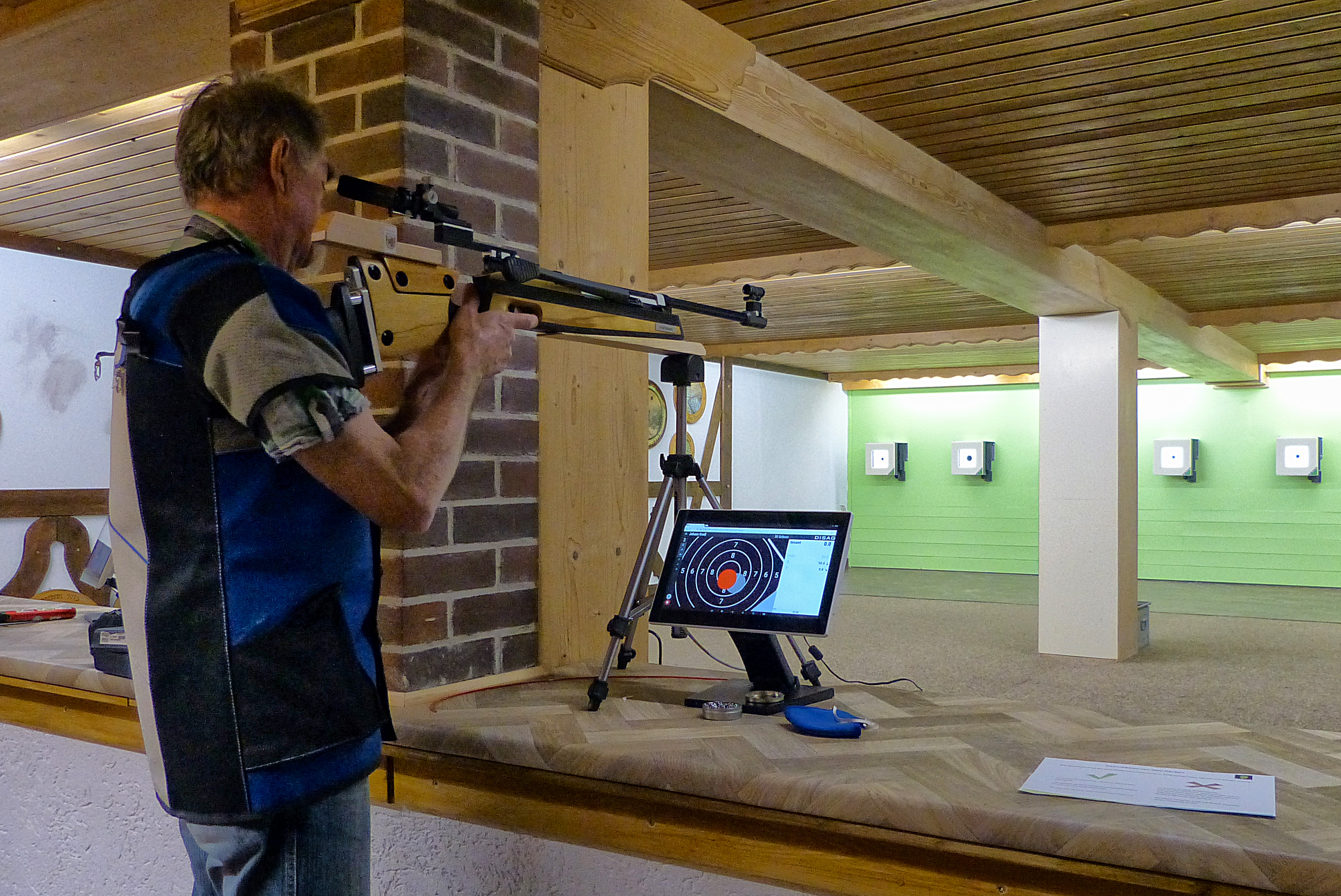 Dann geht es an die Stände - immer das Schutz- und Hygiene-Konzept des OSB beachtend. Als erstes fällt die hervorragende Aus- und Beleuchtung angenehm auf. Dann ist keine Scheibe mehr nötig, die eingesteckt, vor und zurück gezogen werden muss. Da man bereits angemeldet ist, ist der Stand mit Namen zugeordnet und es muss nur noch die jeweils zu schießende Disziplin eingegeben werden, bevor der erste Schuss fällt, der sofort auf dem Monitor angezeigt wird.