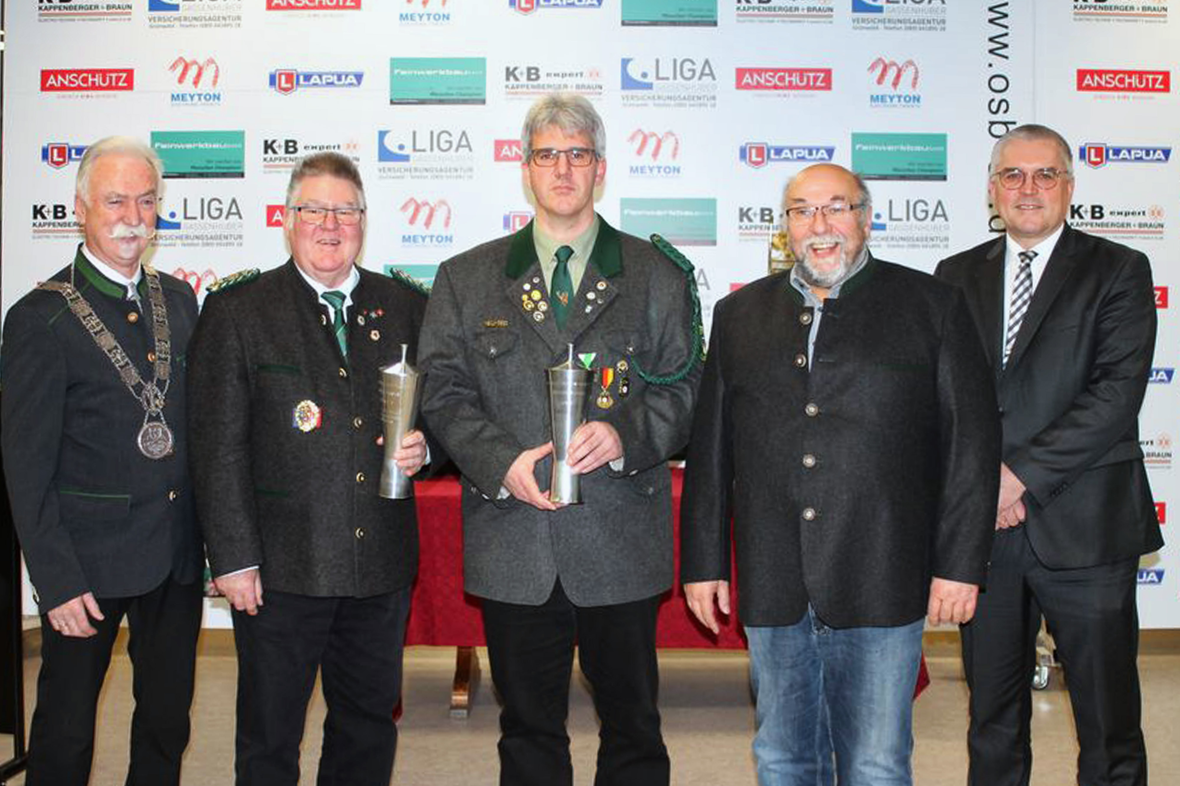 Übergabe der Wanderpokale durch OSB-Präsident Franz Brunner Franz Brunner, Wolfgang Moll,Wolfg. Raps, Ernst Adler, Bgmstr. Richard Tischler