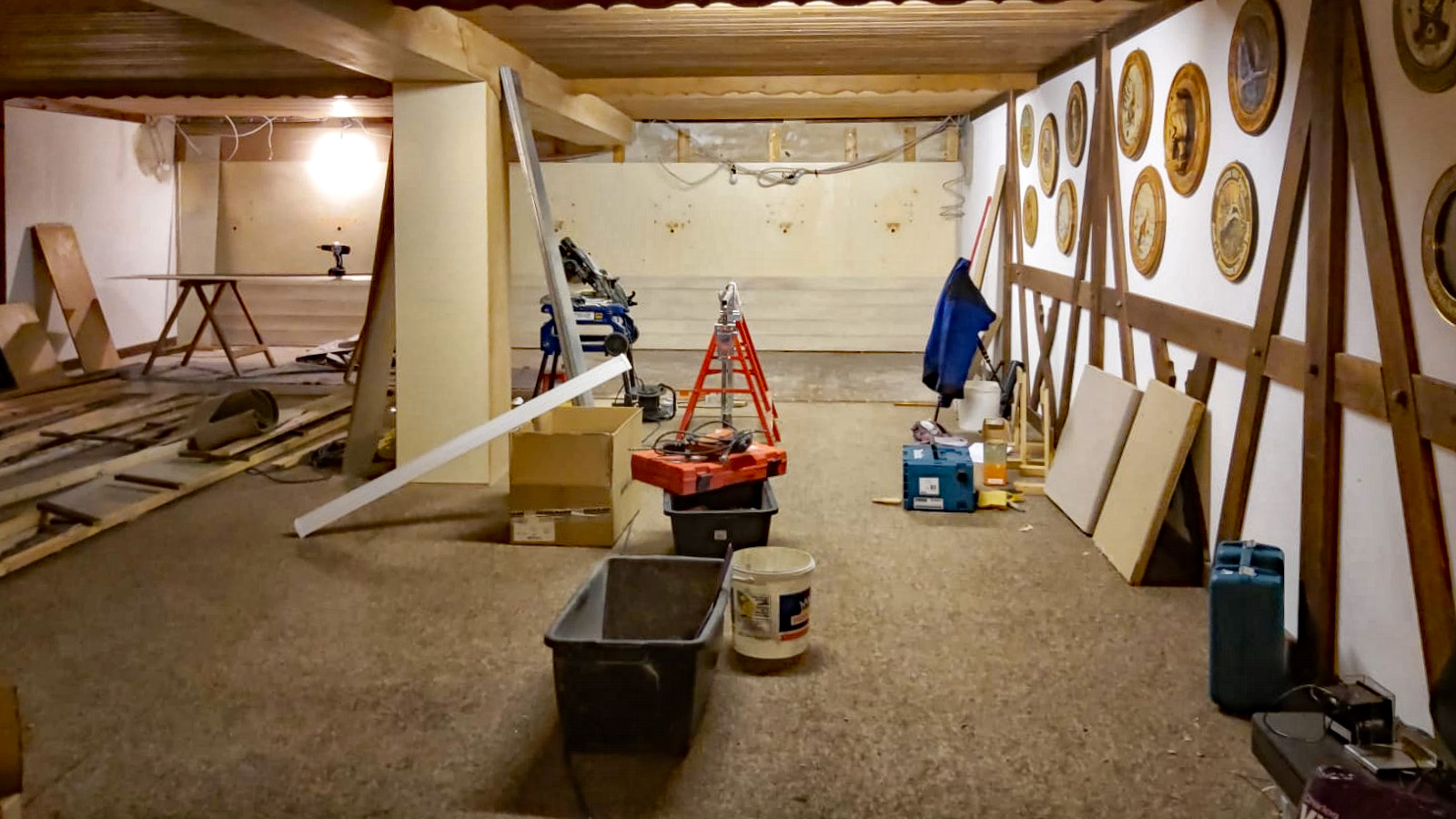 Der Umbau muss in Angriff genommen werden. Eine kleine Gruppe Freiwilliger, „Team Standbau“ meldet sich. Unter der Leitung von Ersten Schützenmeister Hans Roth und Oberschießleiter Schorsch Appel geht es an die Arbeit mit kleinen Mannschaften von zwei bis maximal vier Personen mit den entsprechenden Schutzmaßnahmen ( Abstand, Mund-, Nasenschutz, Hygienemaßnahmen ).
