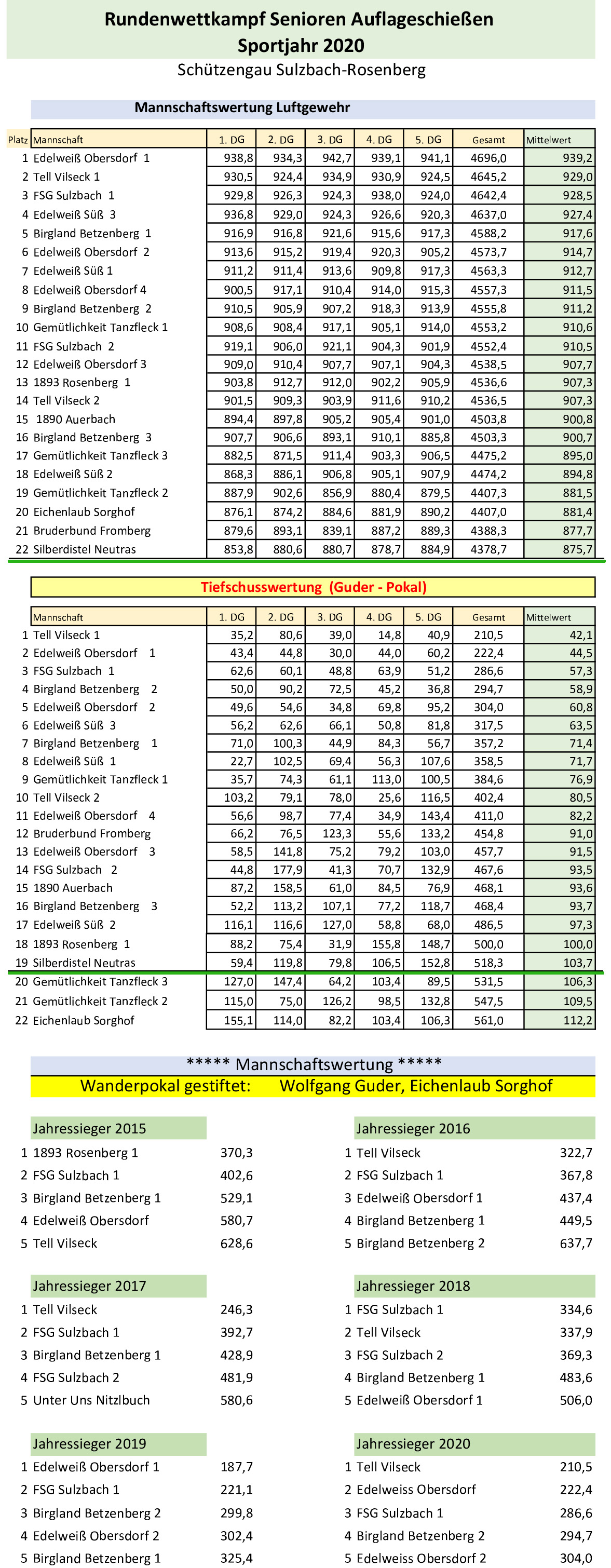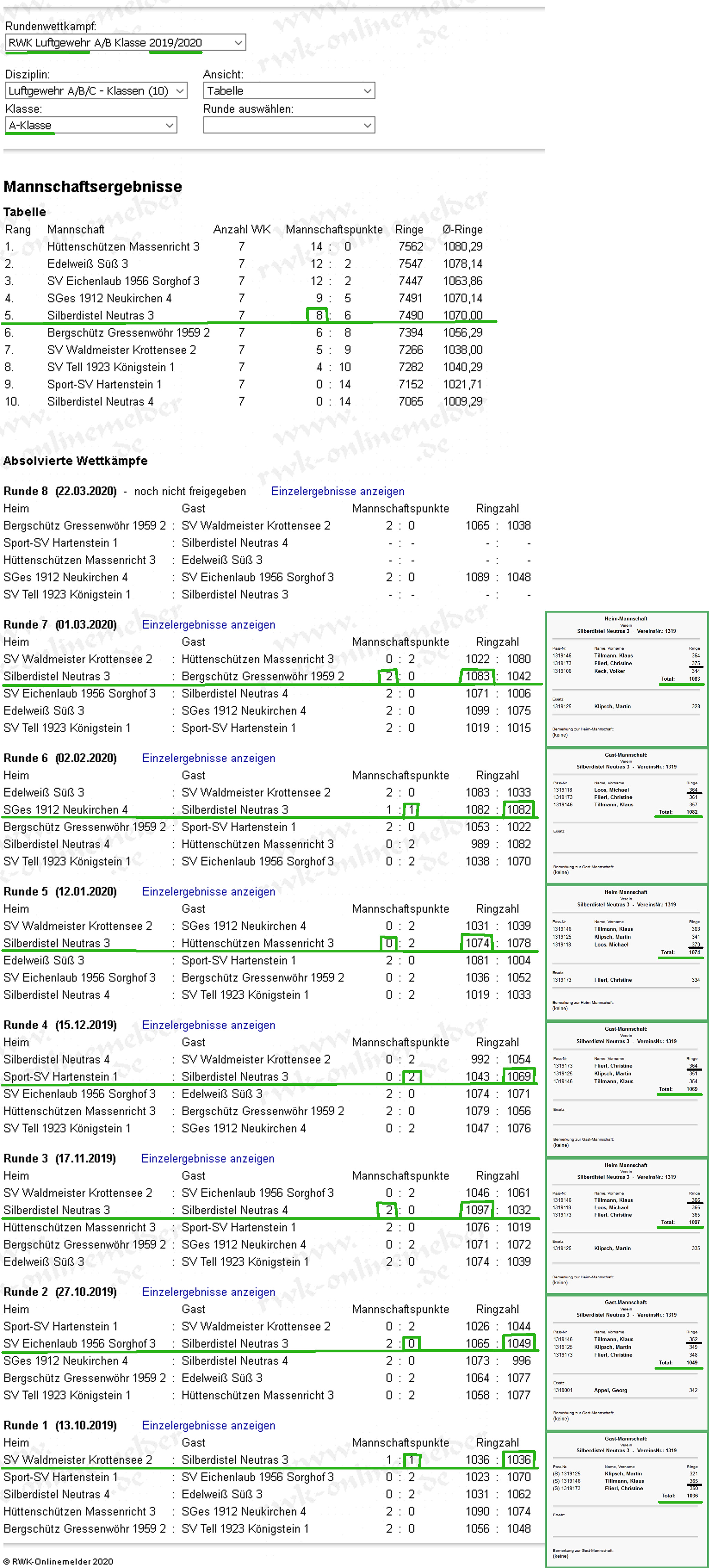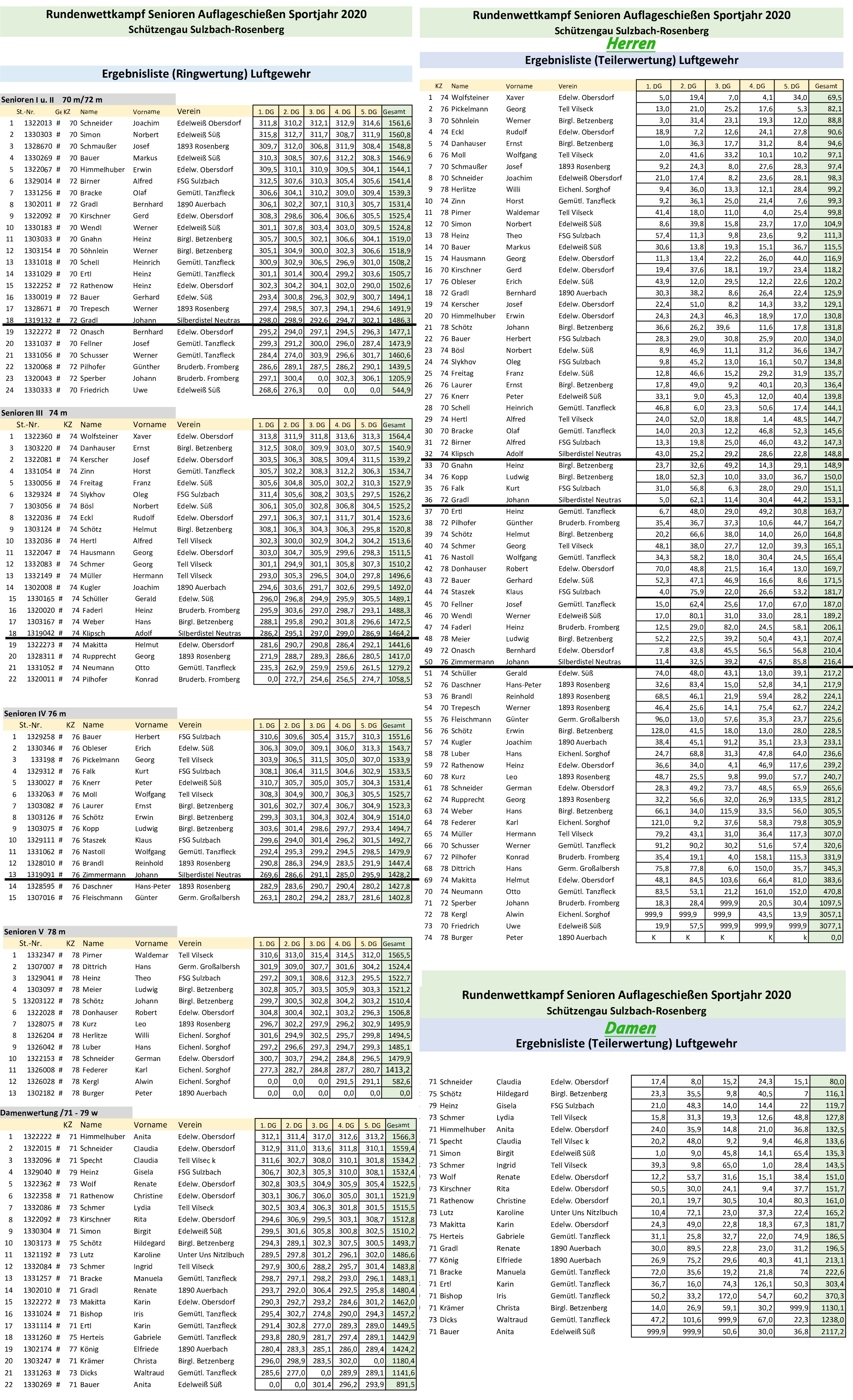 Ergebnisse Rundenwettkämpfe “Schützen” 2019/20