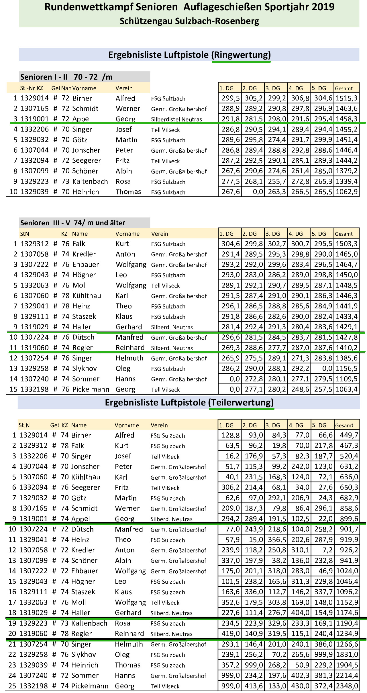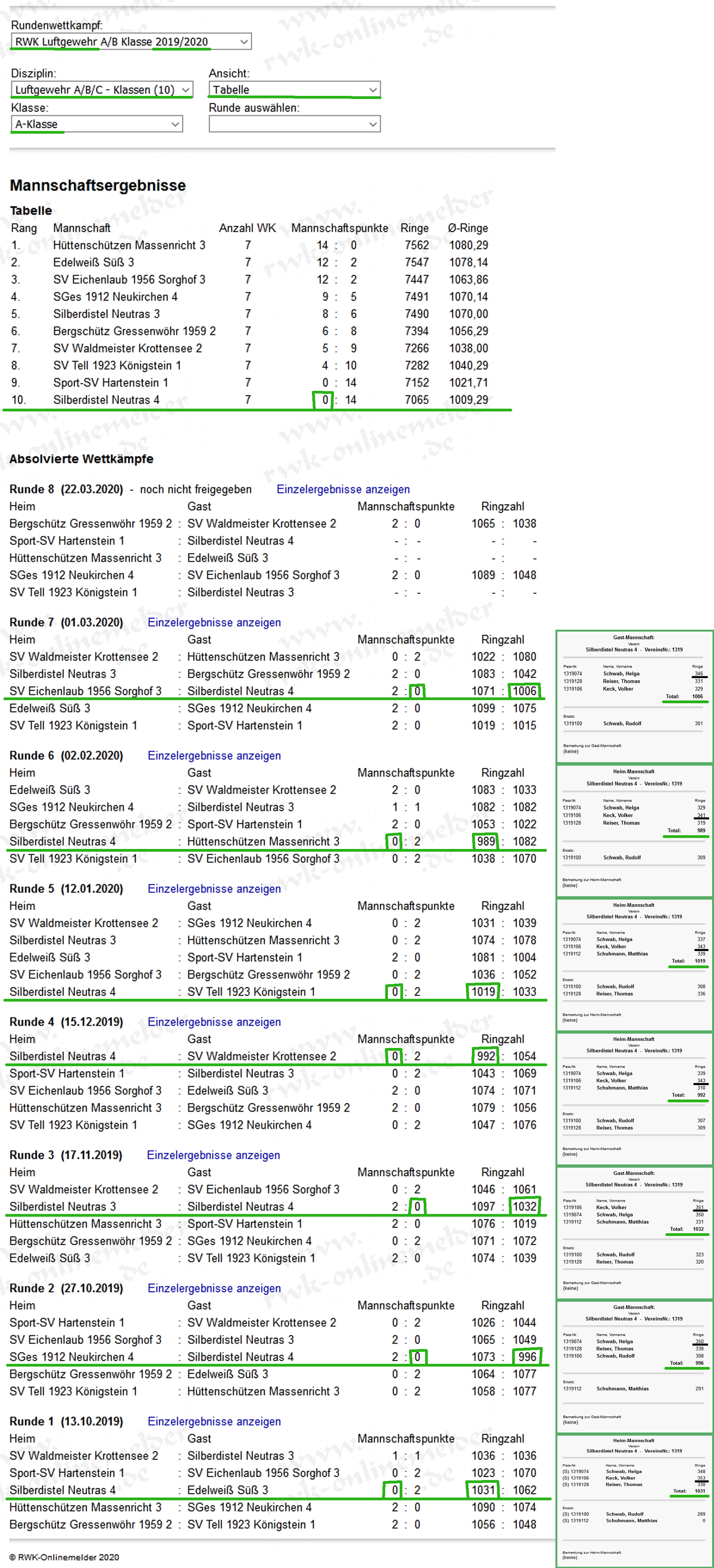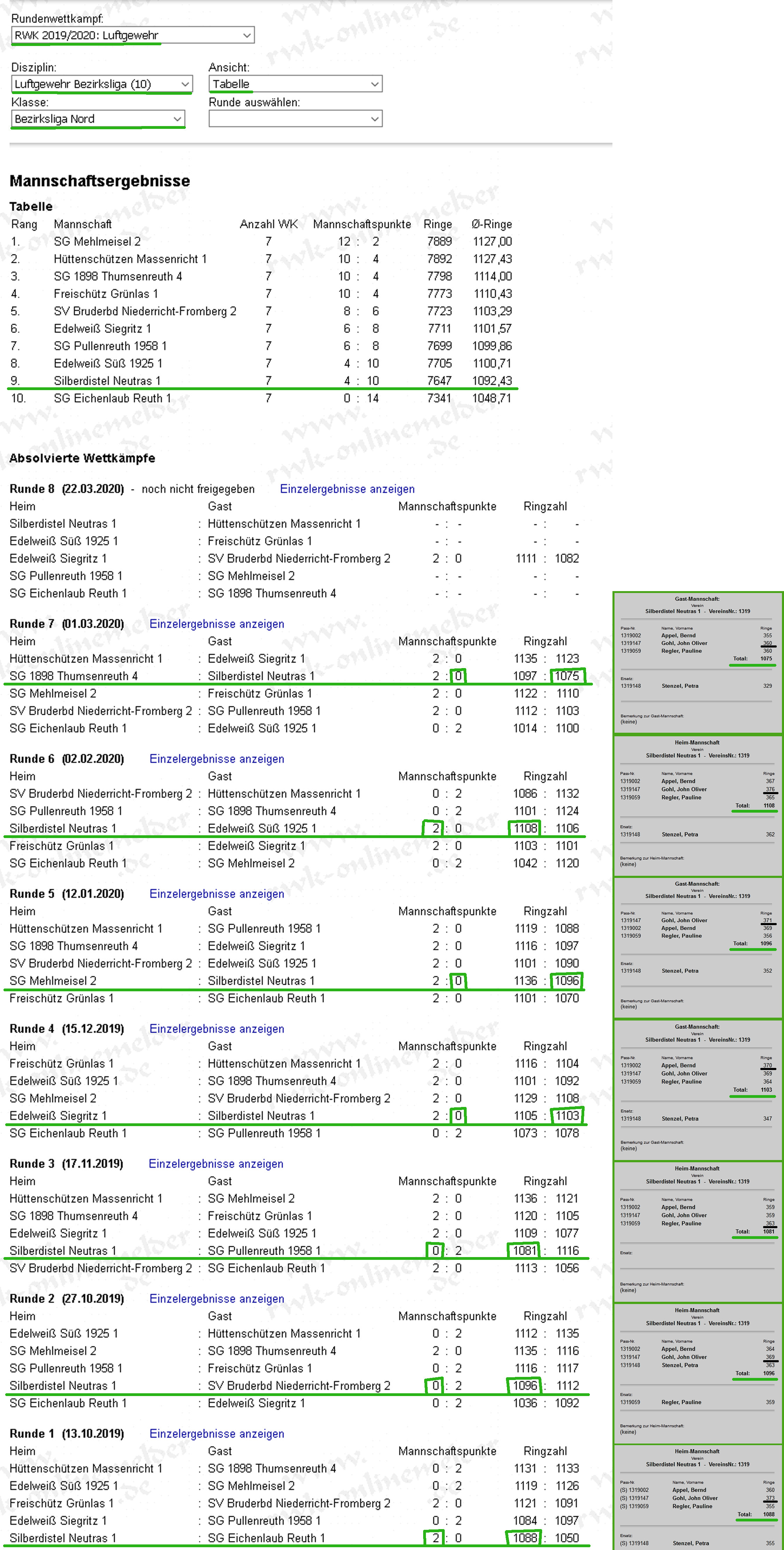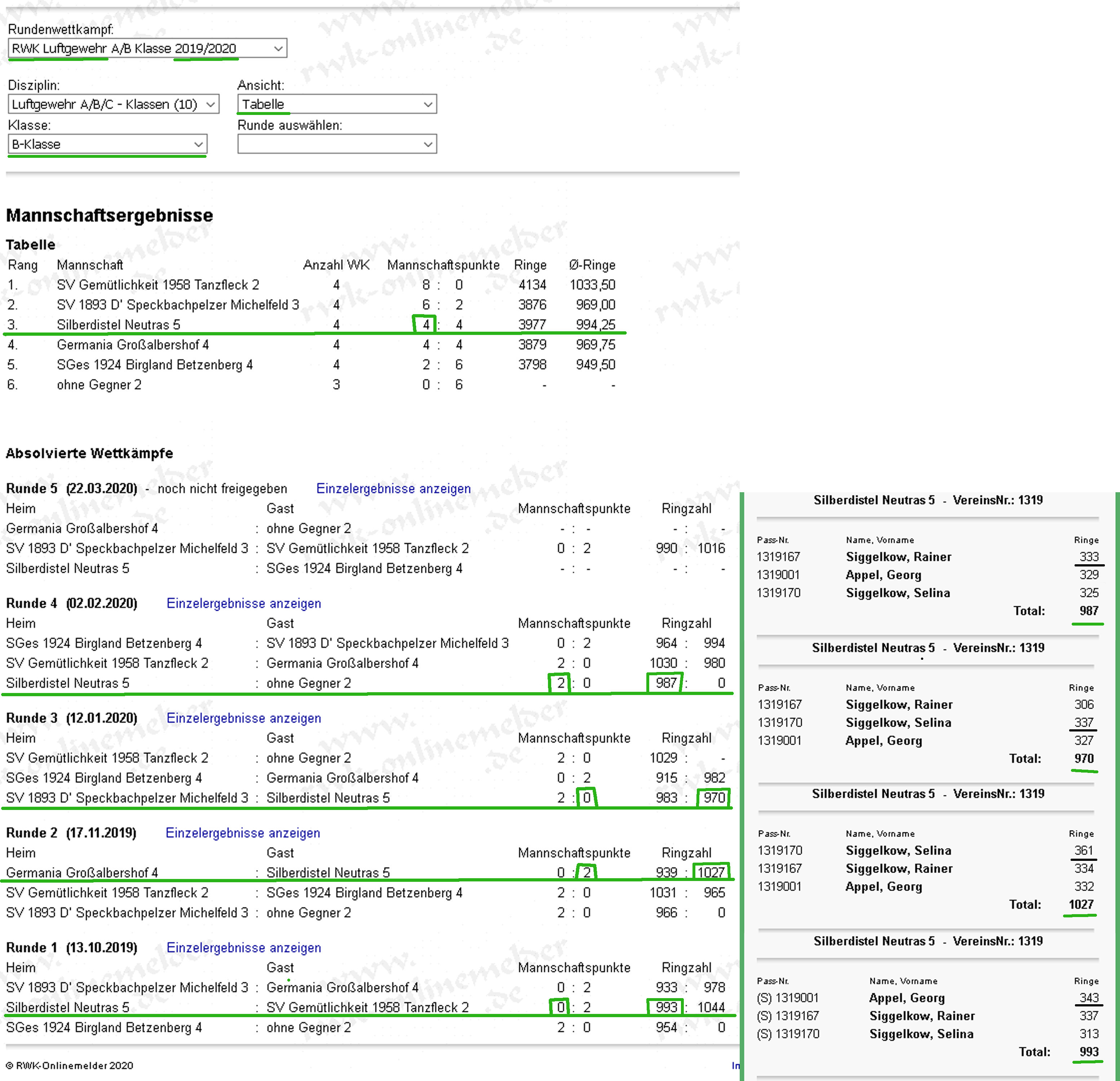 Ergebnisse Rundenwettkämpfe “Schützen” 2019/20