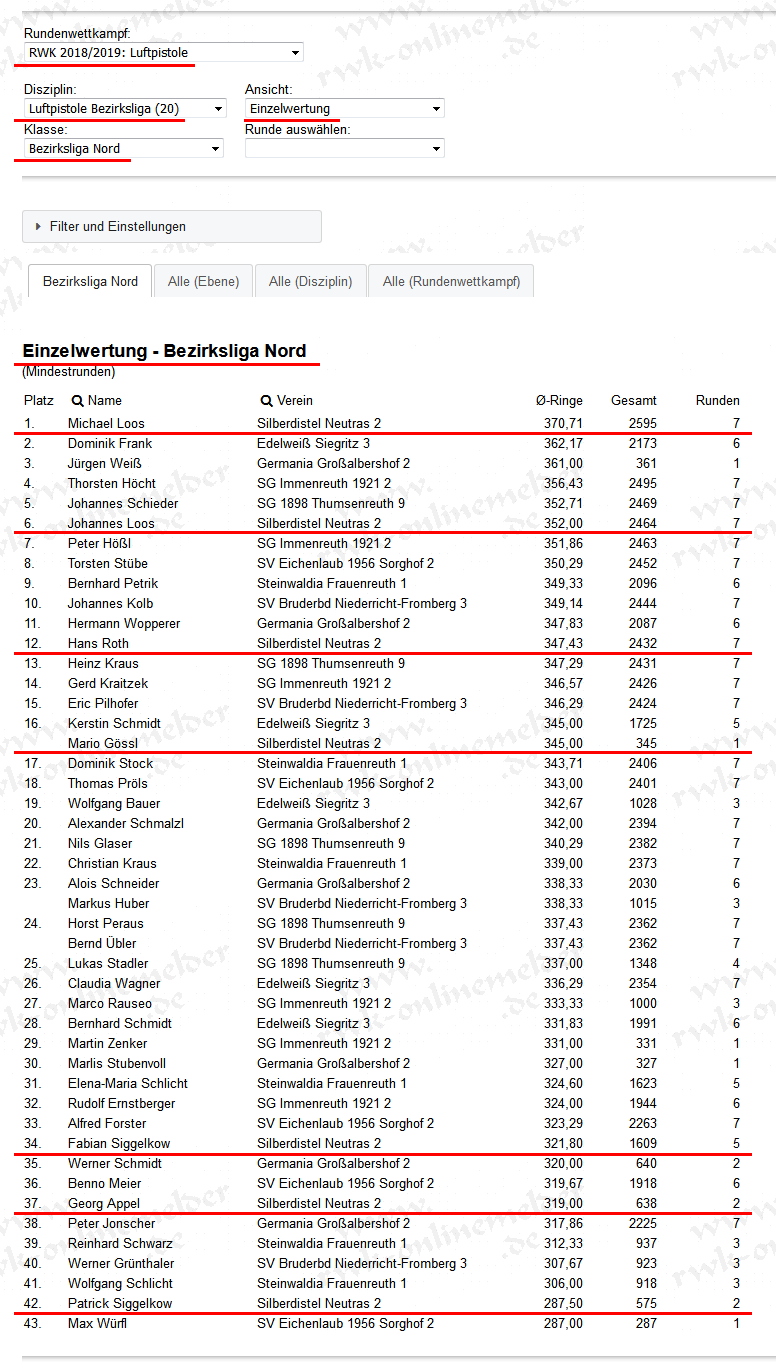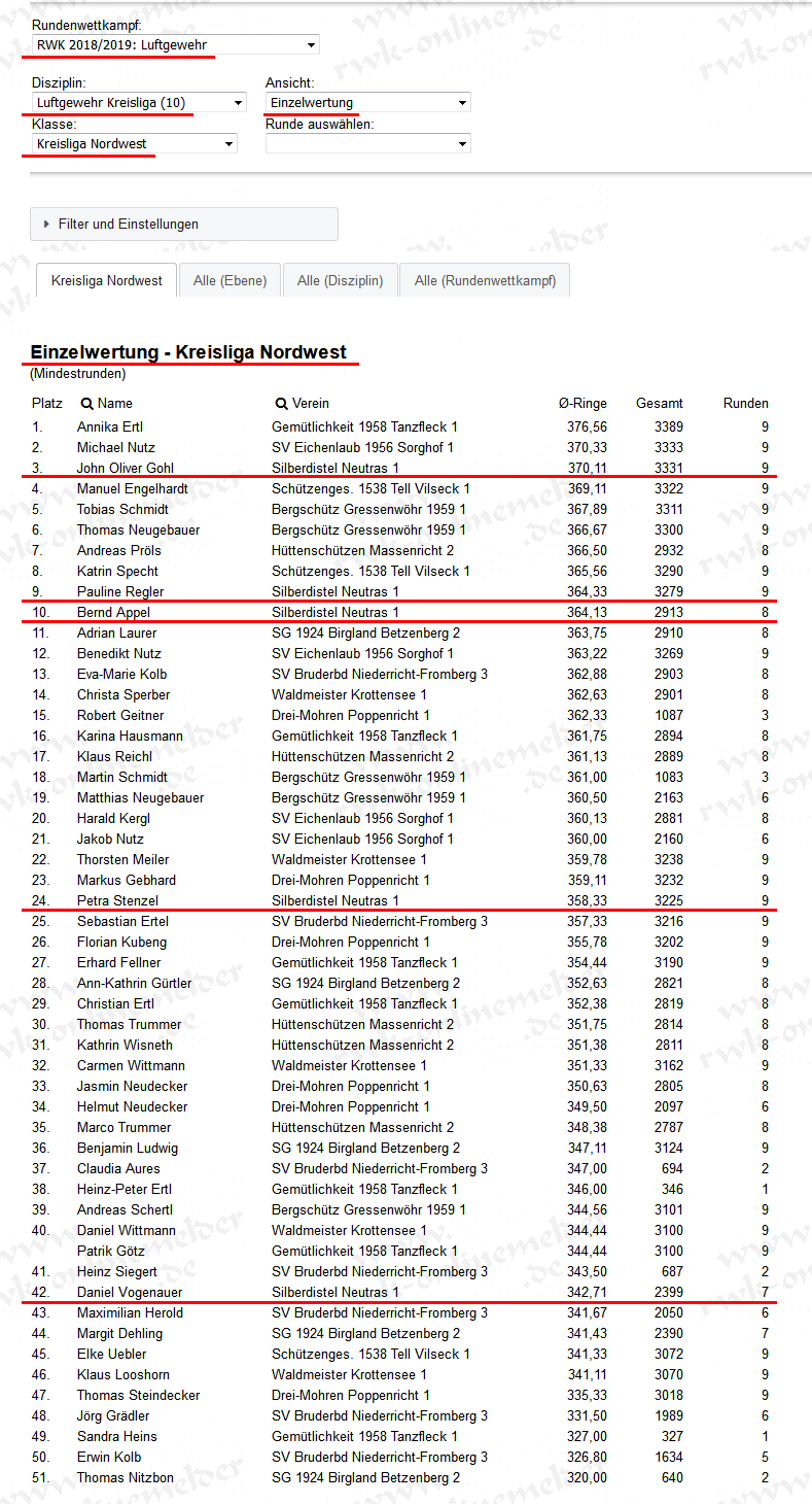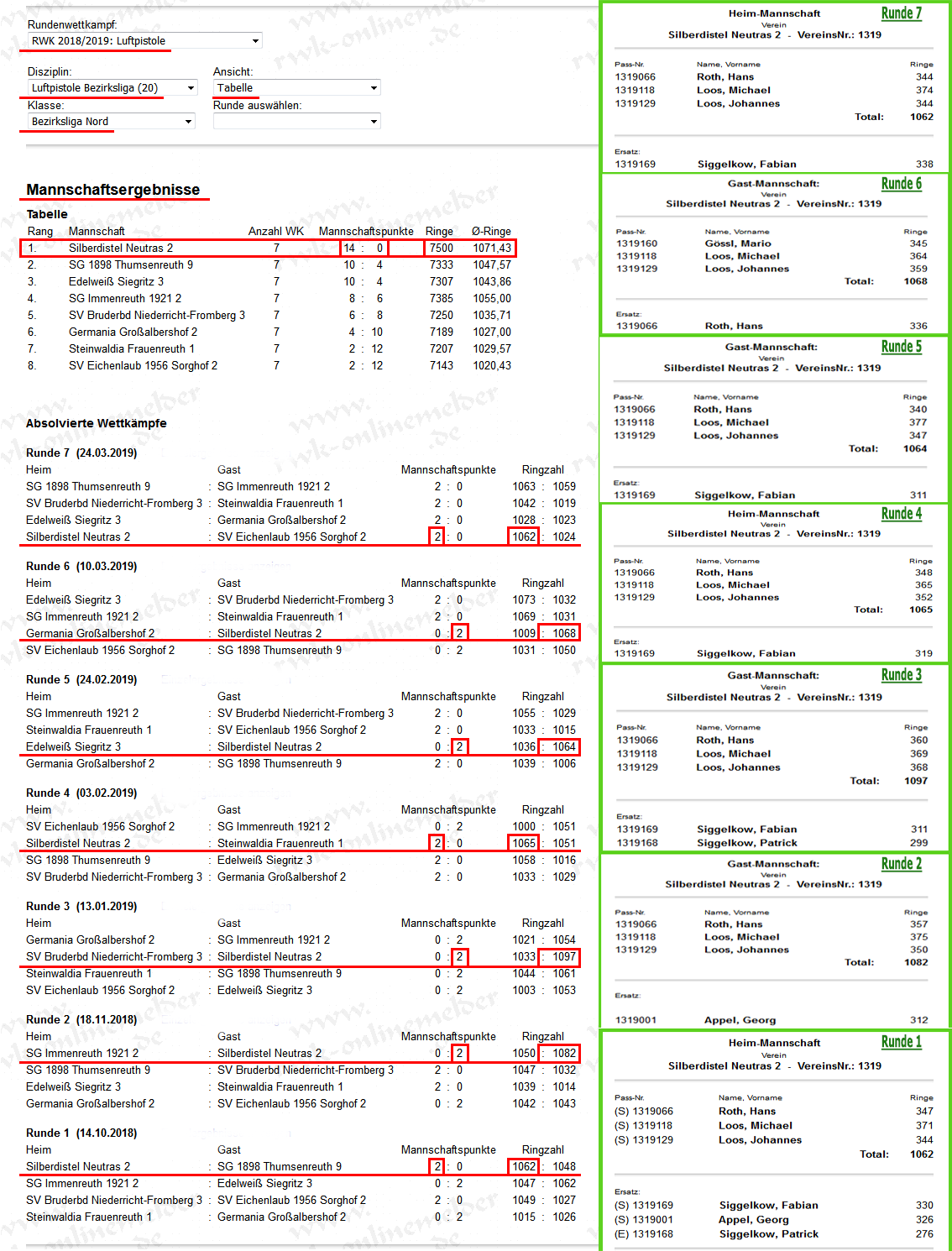 Flierl, Christine 1319 173 (Mannschaftsführer): Siggelkow, Rainer 1319 167 Siggelkow, Sandra 1319 171 Siggelkow, Selina 1319 170 Vogenauer, Nico 1319 161