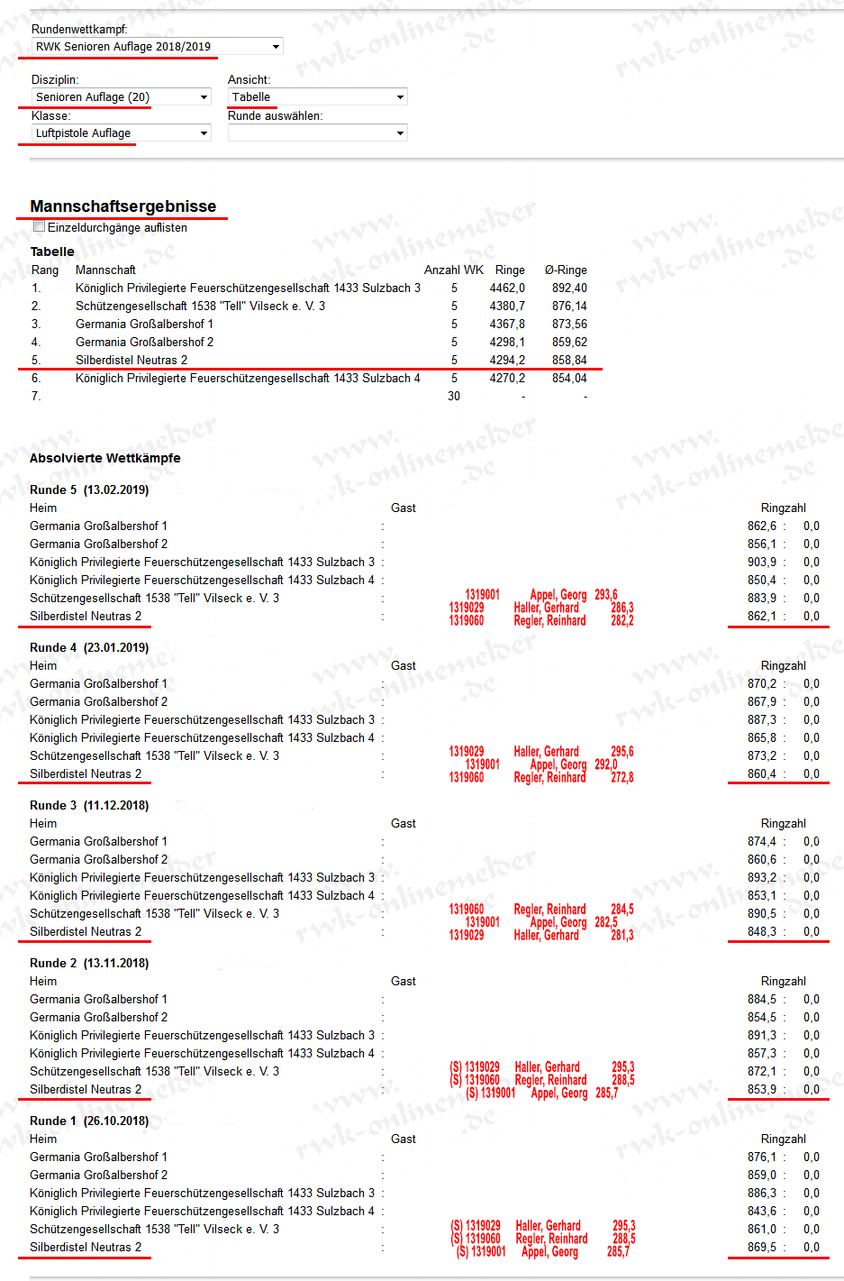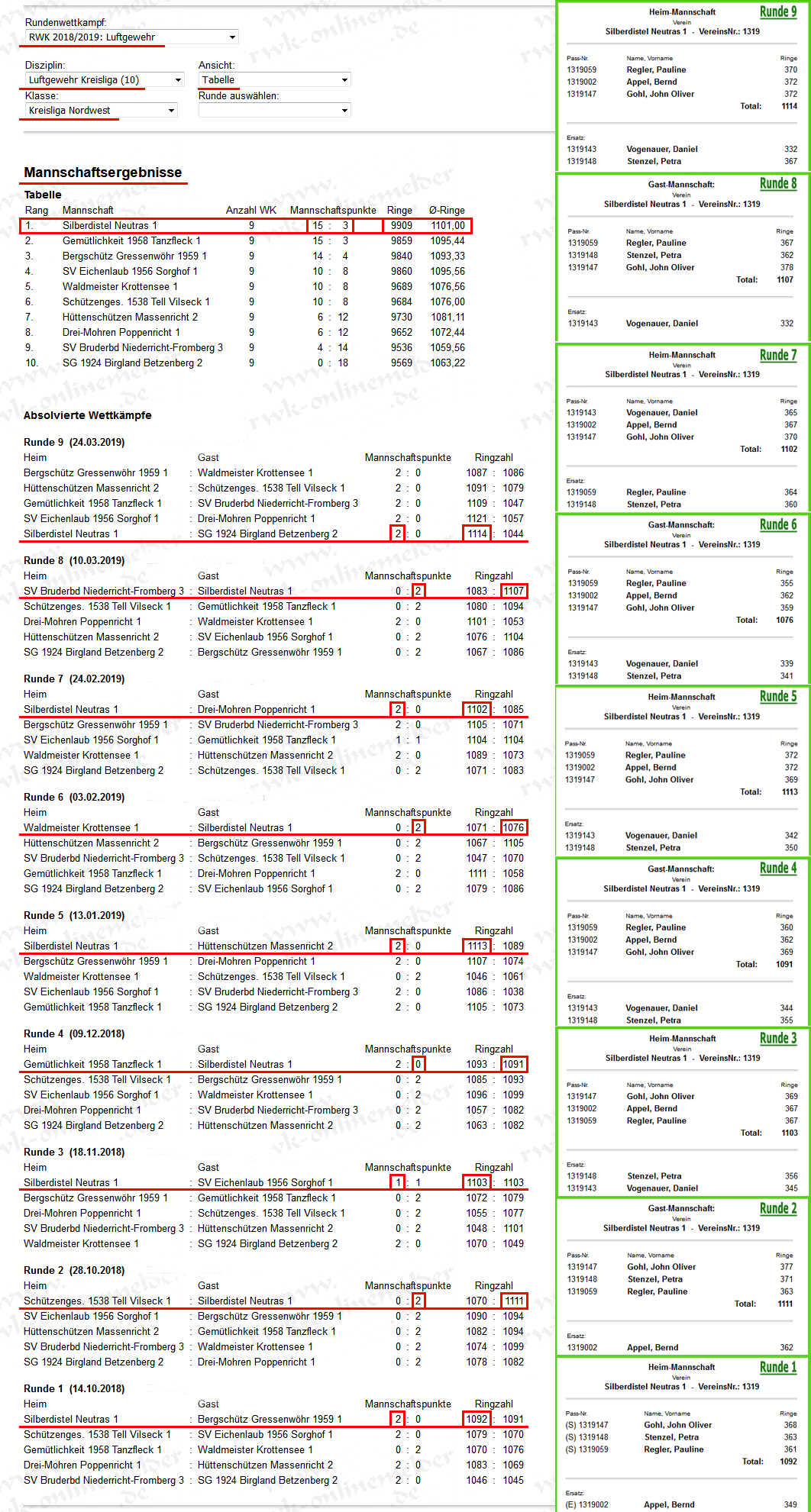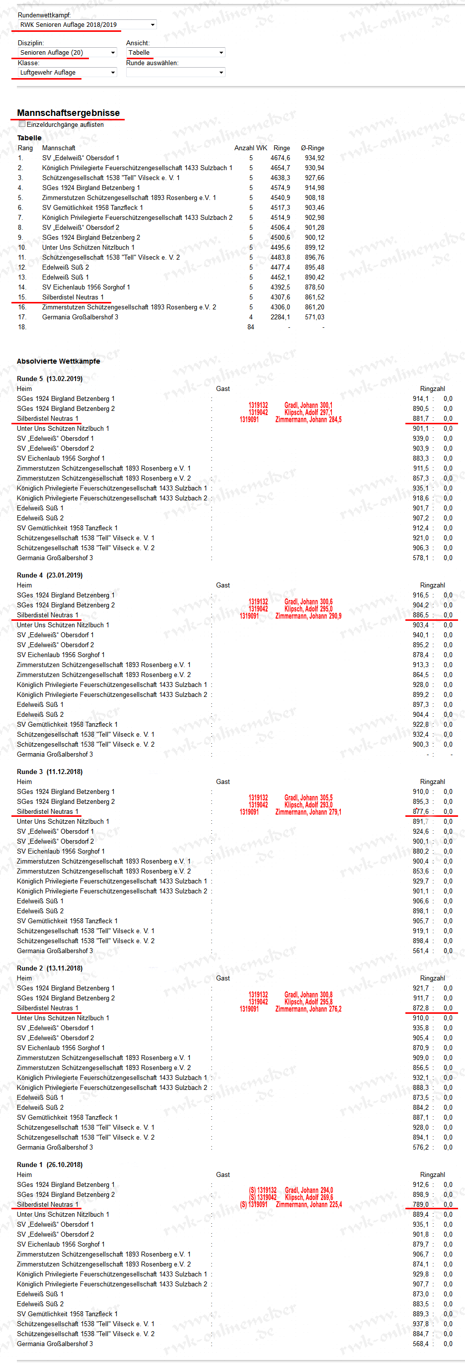 Ergebnisse Rundenwettkämpfe “Schützen” 2018/19
