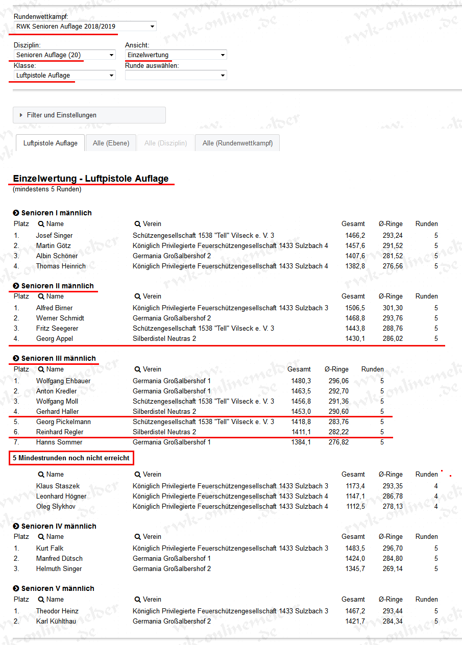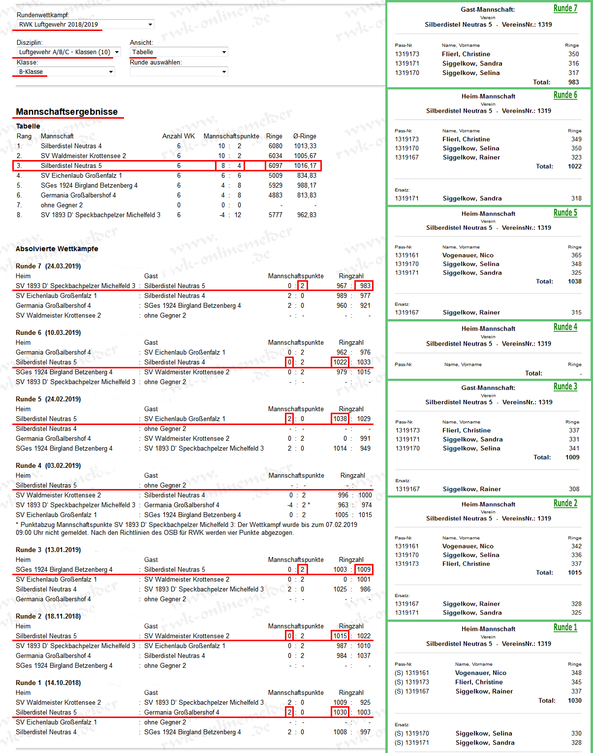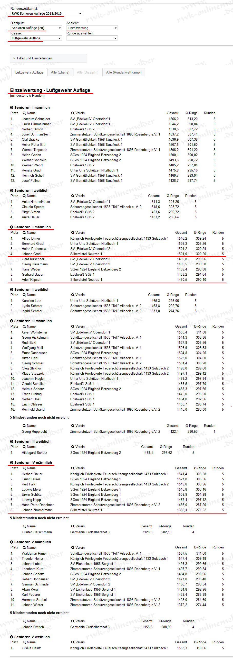 Ergebnisse Rundenwettkämpfe “Schützen” 2018/19